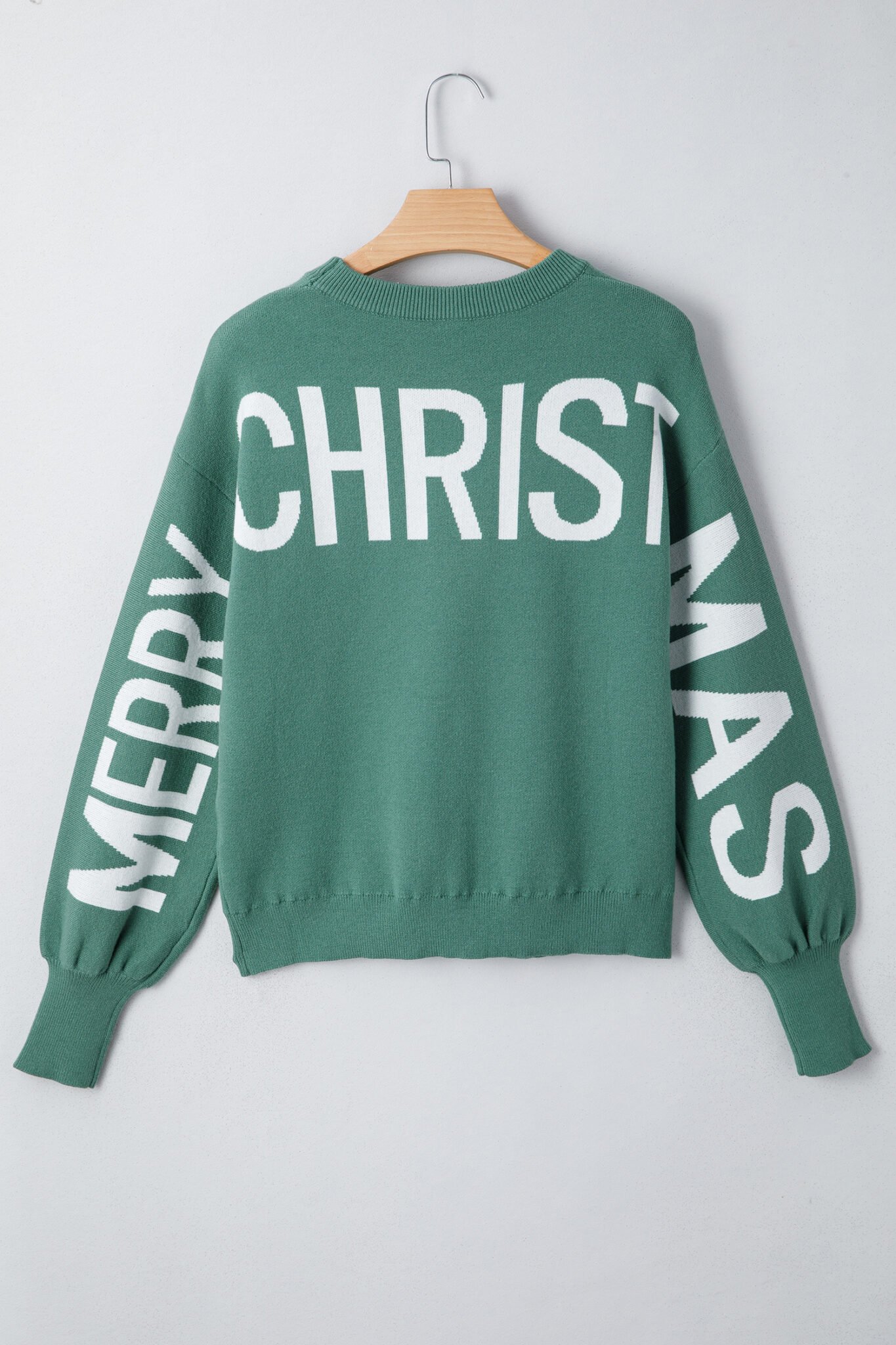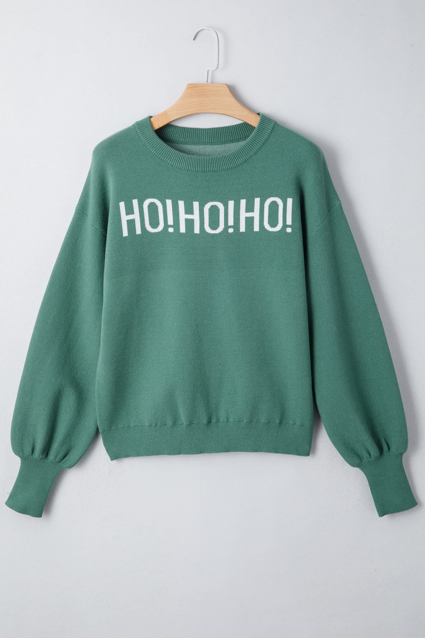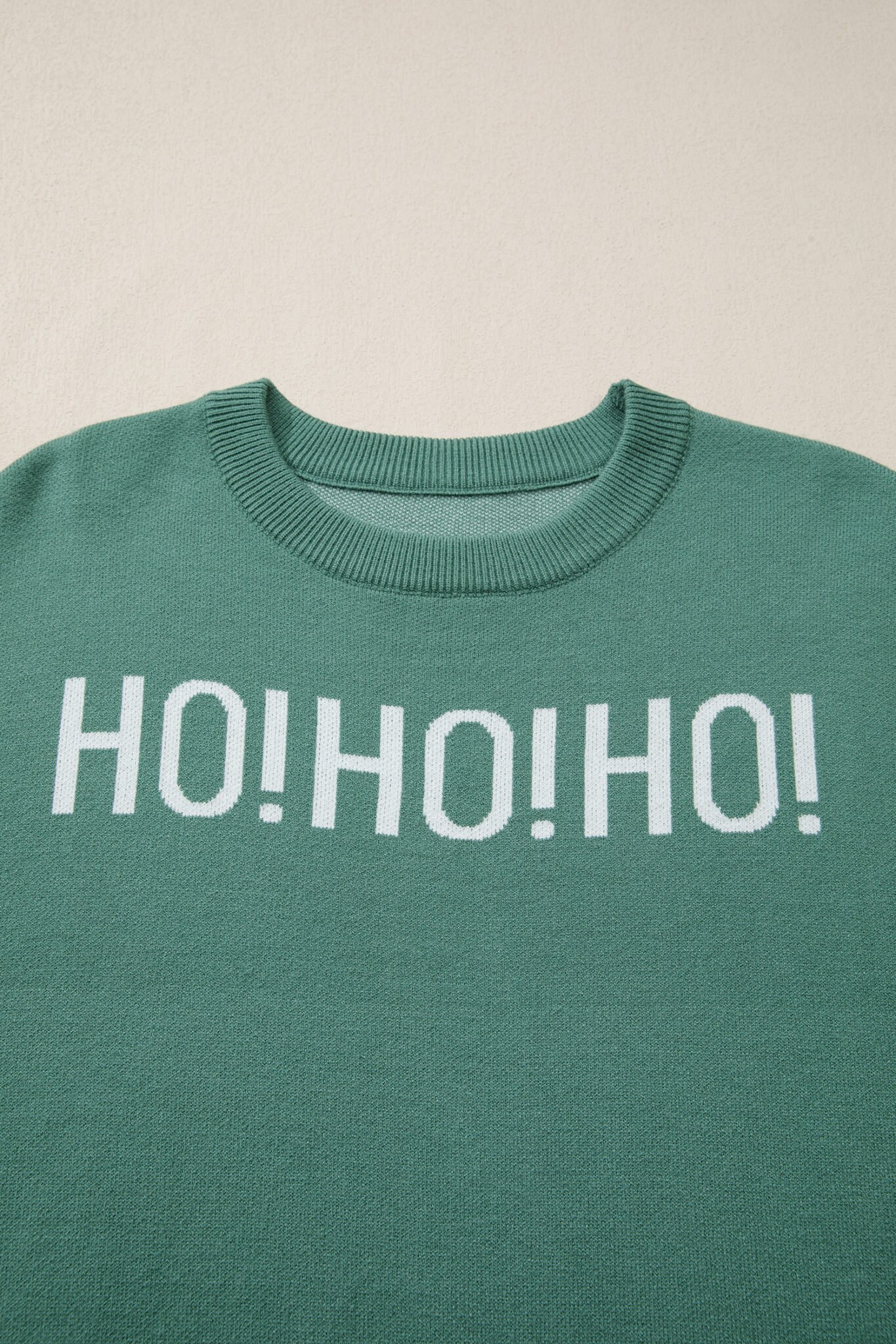 Blackish Green HO HO HO MERRY CHRISTMAS Drop Shoulder Loose Sweater