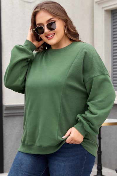 Blackish Green Loose Patchwork Crewneck Plus Size Sweatshirt