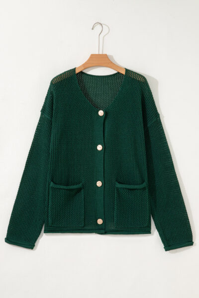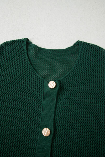 Blackish Green Plus Size Golden Accent Buttons Short Sweater Cardigan