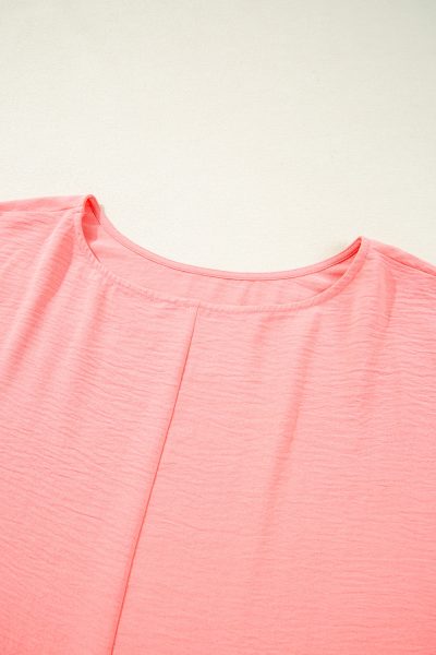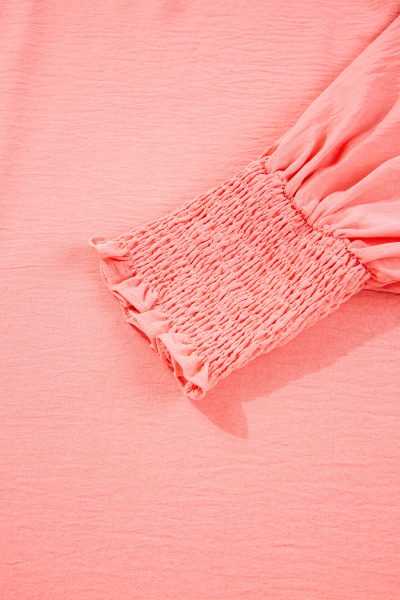 Blossom Shirred Cuffs Half Sleeve Plus Size Textured Blouse