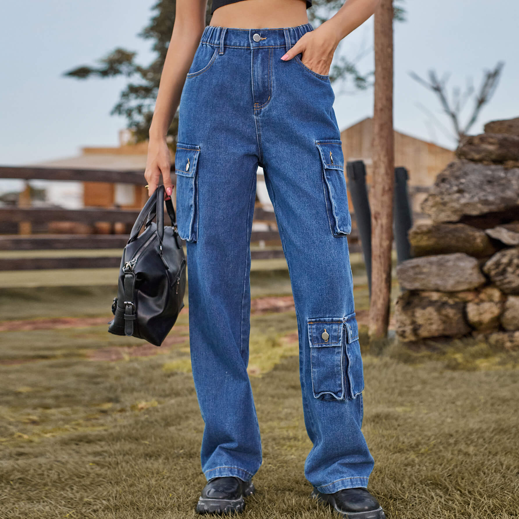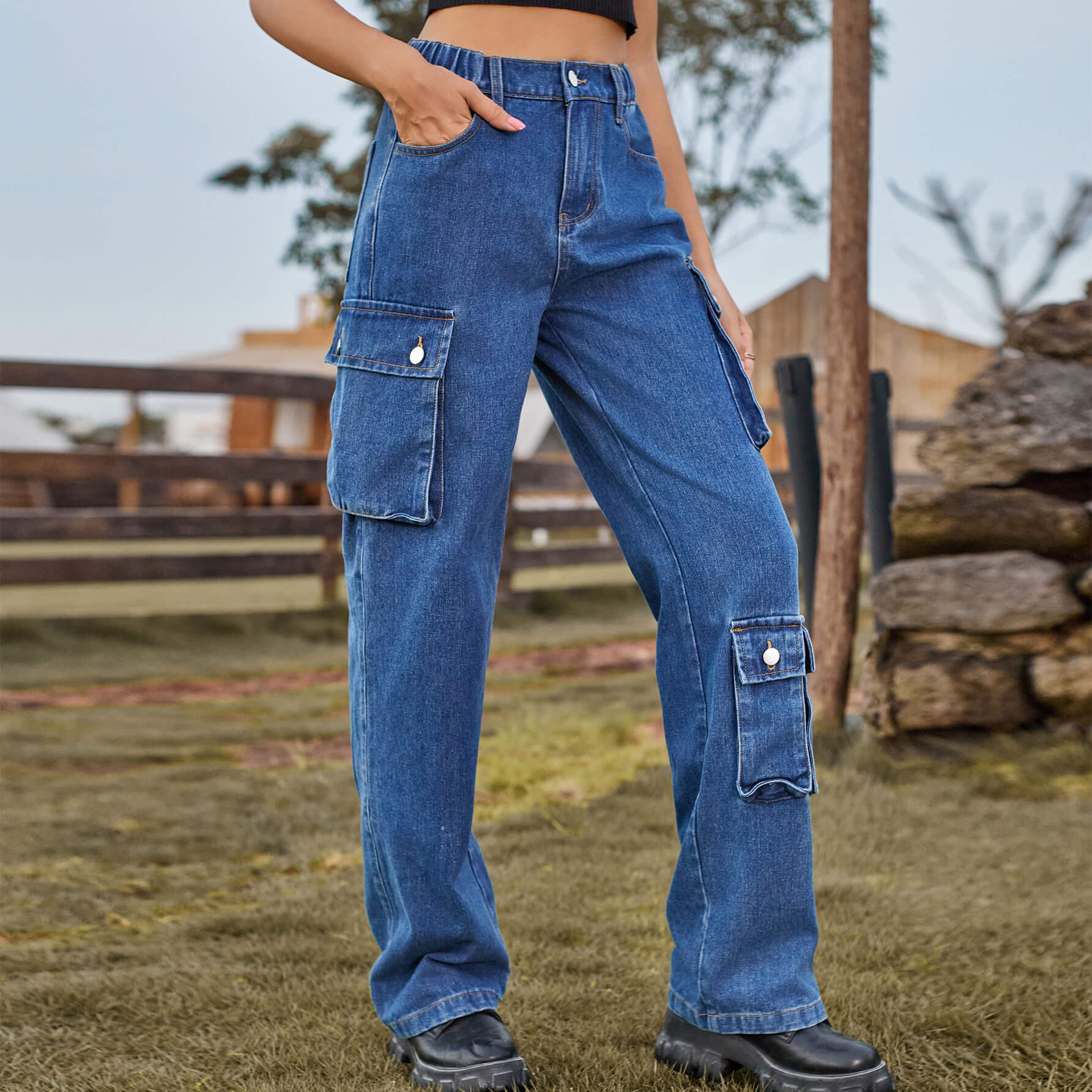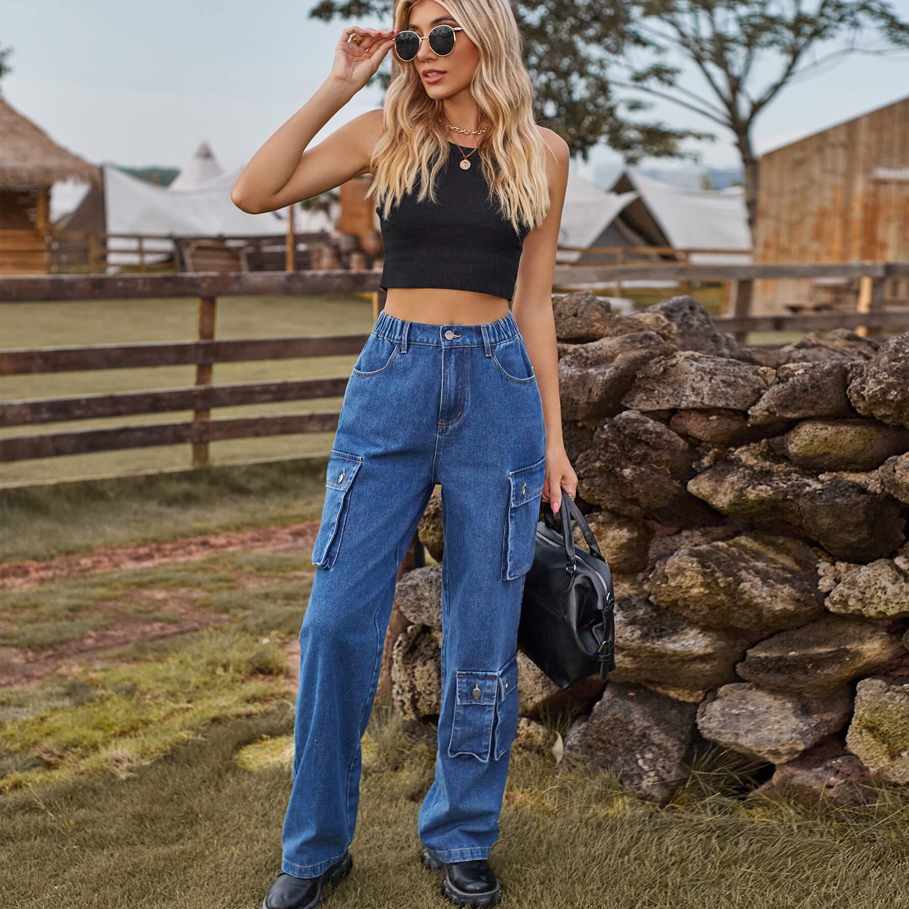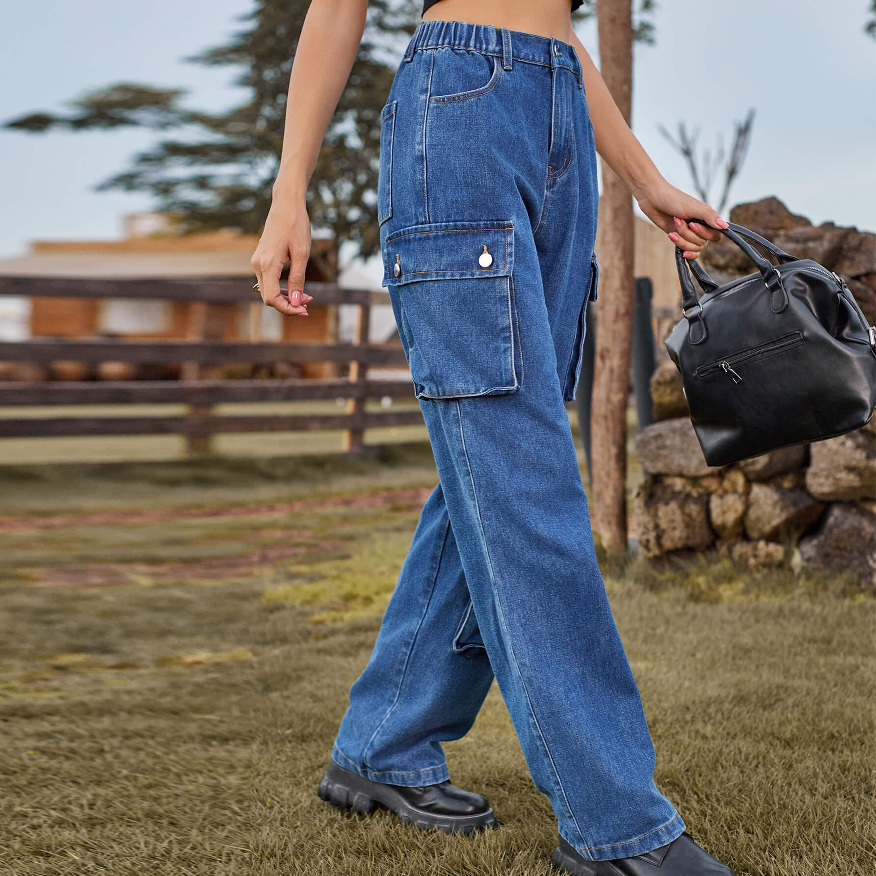 Blue Asymmetric Pocket Denim Utility Cargo Pants