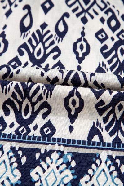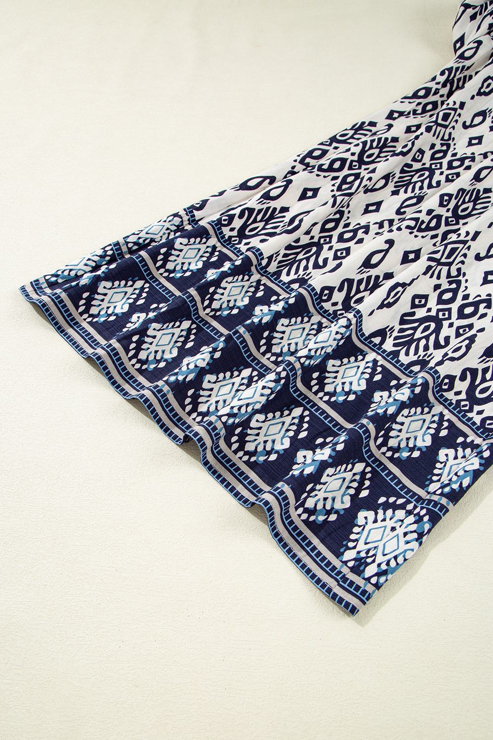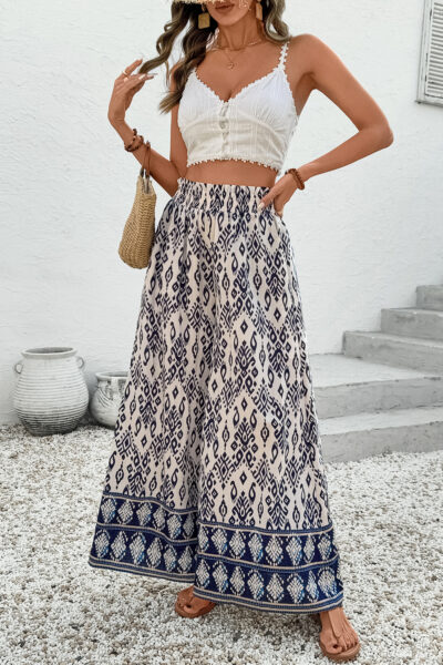 Blue Boho Pattern Print High Waist Wide Leg Loose Pants