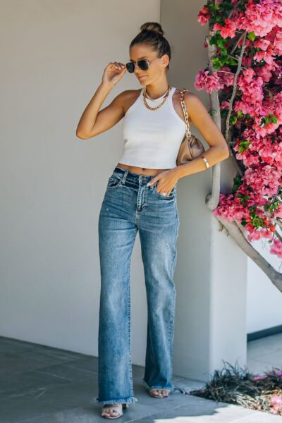 Blue Color Mid-Rise Washed Distressed Frayed Denim Jeans