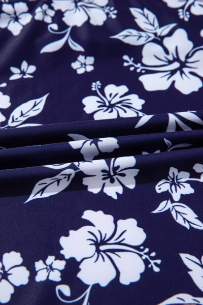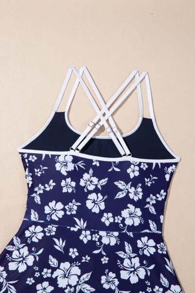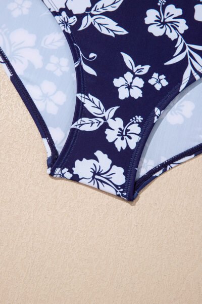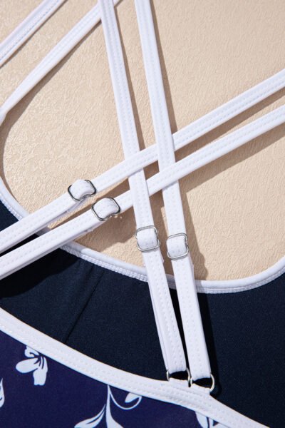 Blue Crossed Back Floral Print Asymmetric Knot Side One Piece Swimsuit