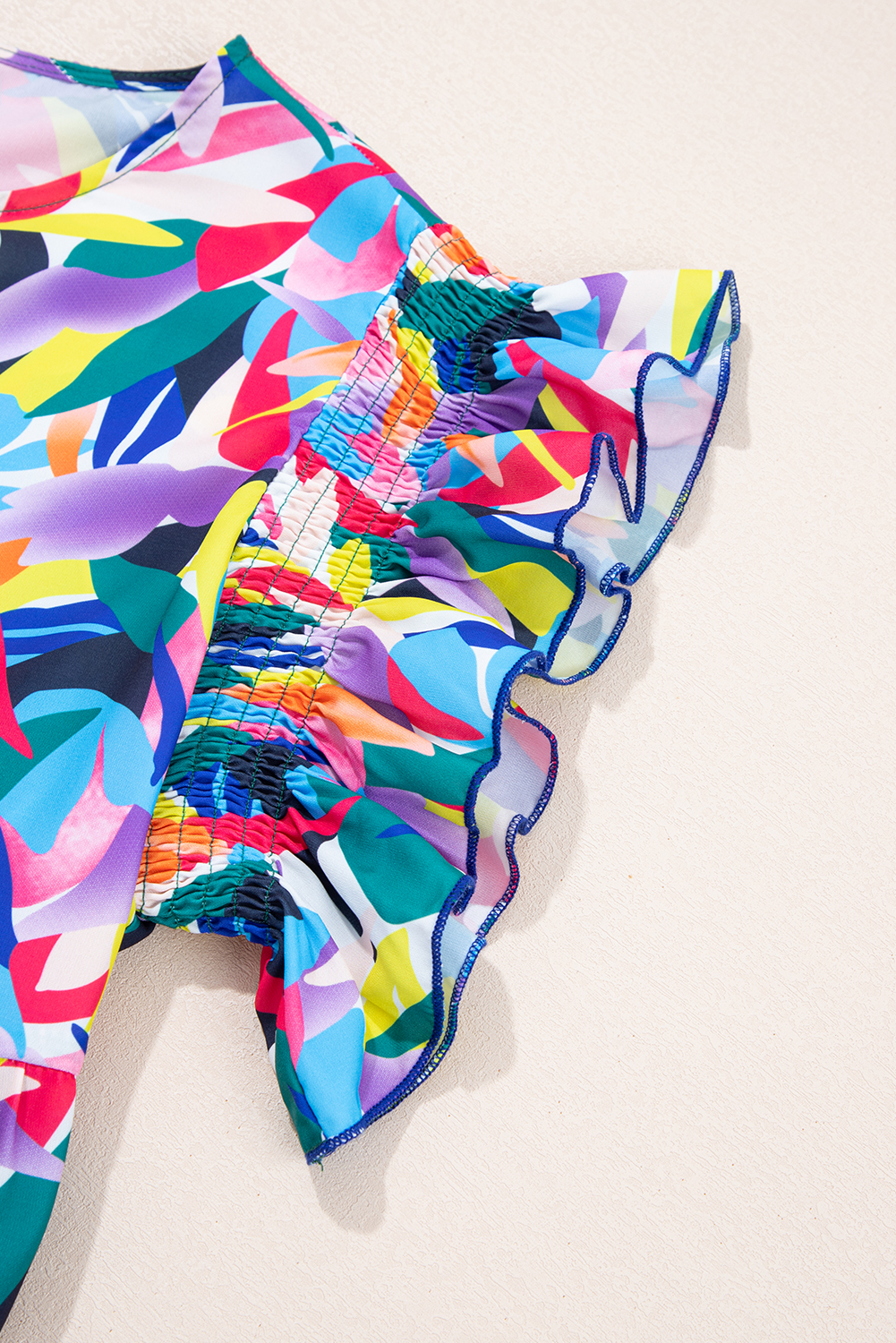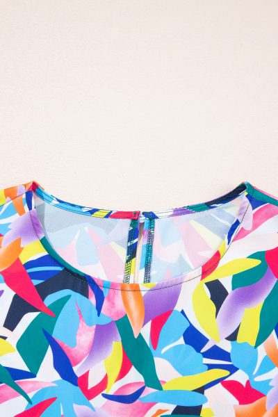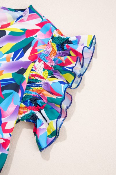 Blue Geometric Print Ruffled Short Sleeve Plus Size Tiered Maxi Dress