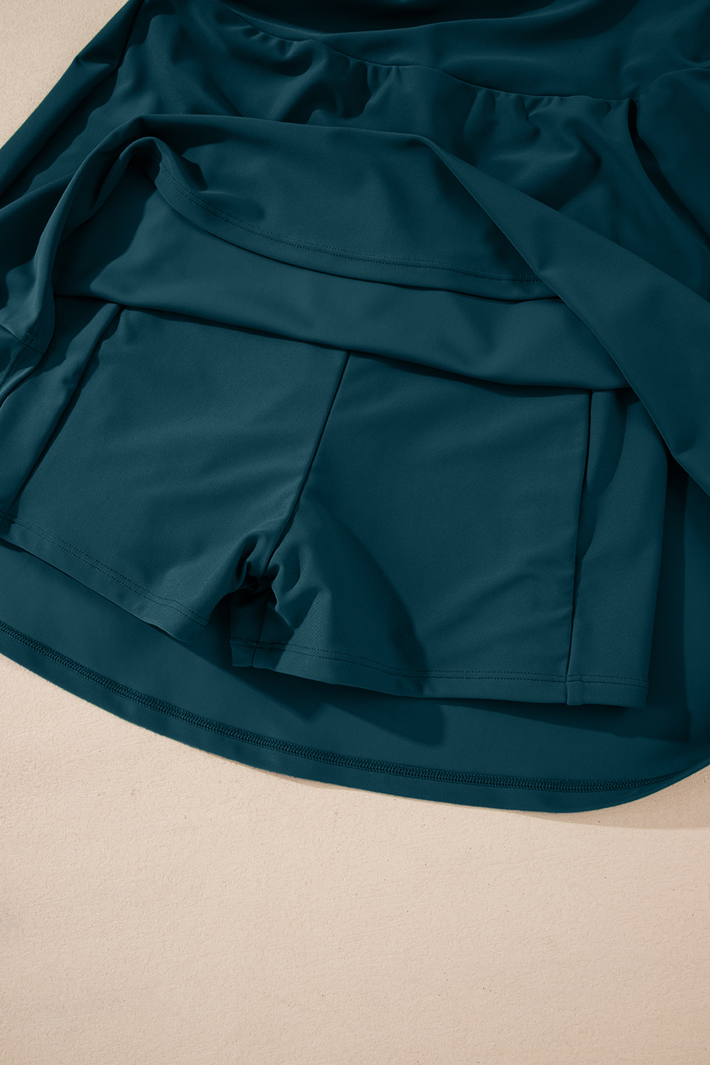 Blue Sapphire Contrast Edge Ruffled High Waist One Piece Swim Dress