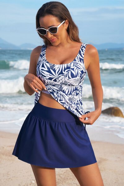 Blue Scoop Neck Adjustable Tankini and Matching Skort Bathing Suit