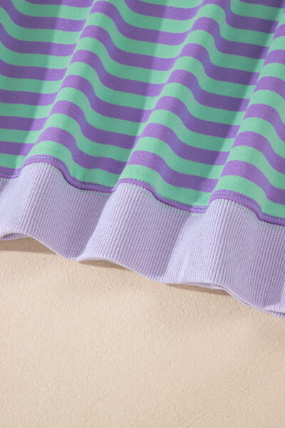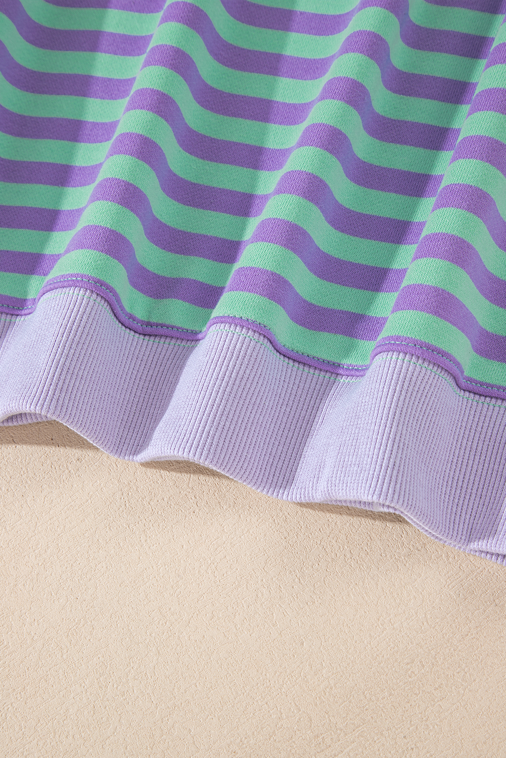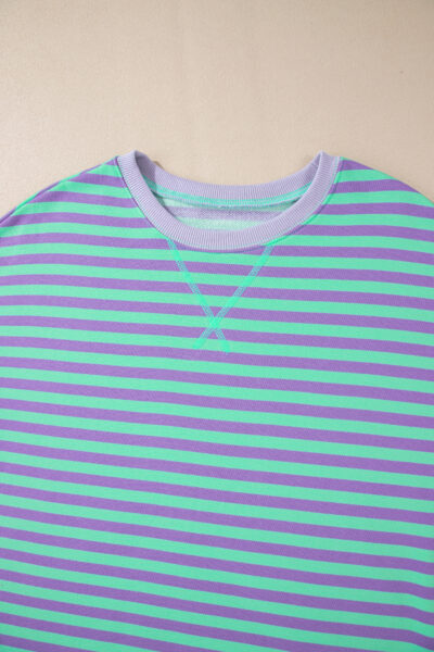 Blue Stripe Contrast Ribbed Trim Crossed Stitch Drop Shoulder Sweatshirt