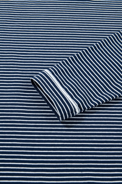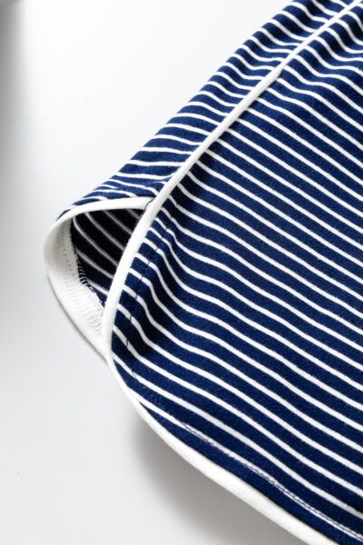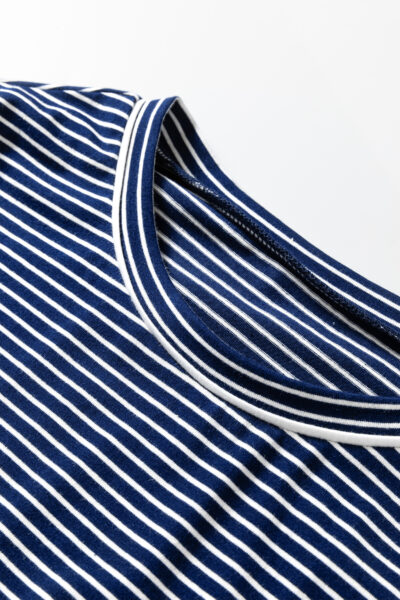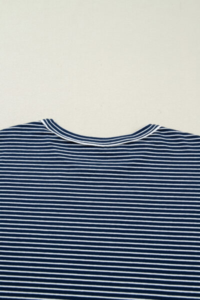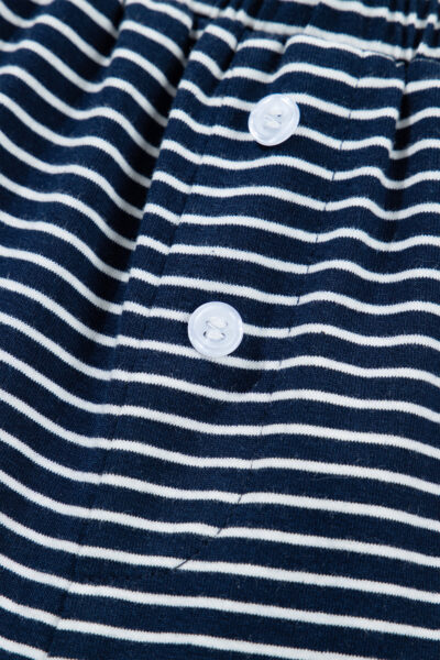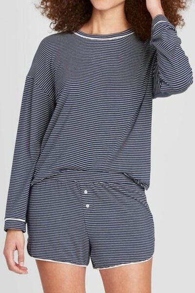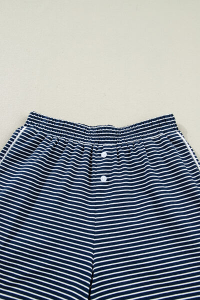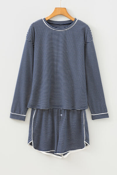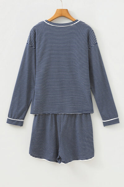 Blue Stripe Drop Shoulder Round Neck Long Sleeve Tee and Buttoned Shorts 2pcs Lounge Set