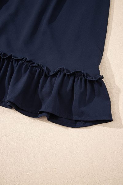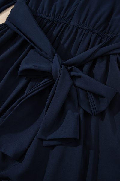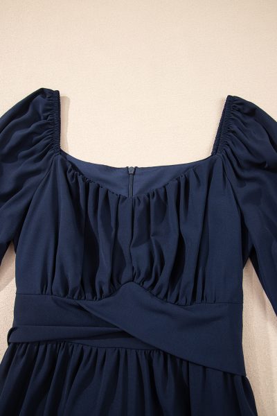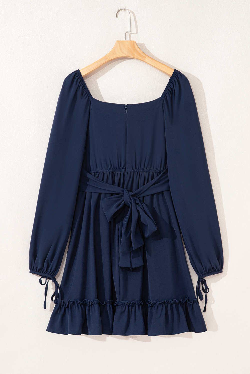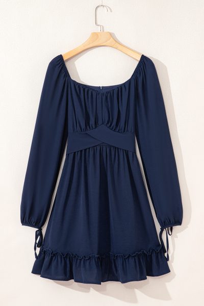 Blue White Plain Ruffled High Waist Square Neck Mini Dress