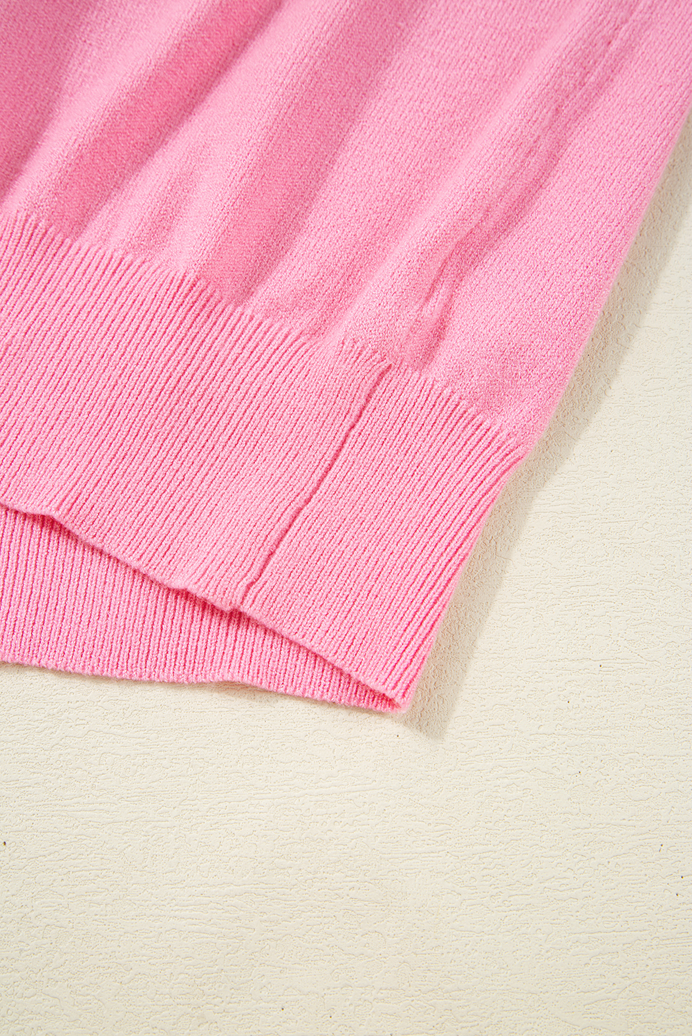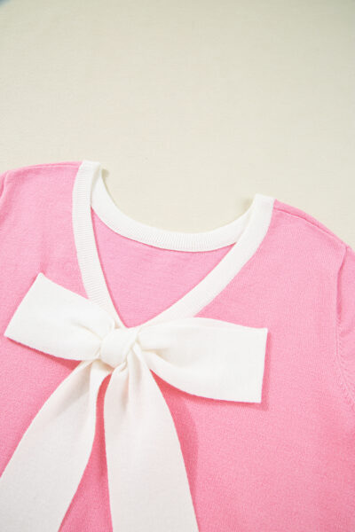Bonbon Colorblock Bow V-Shape Cut Back Short Sleeve Sweater
