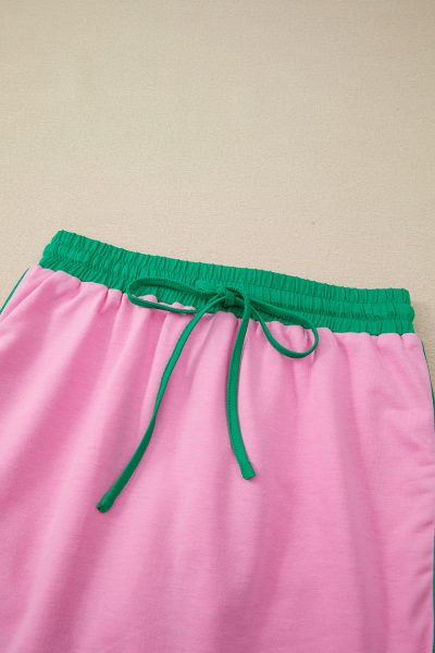 Bonbon Colorblock Edge Drop Shoulder T Shirt and Skort 2Pcs Set