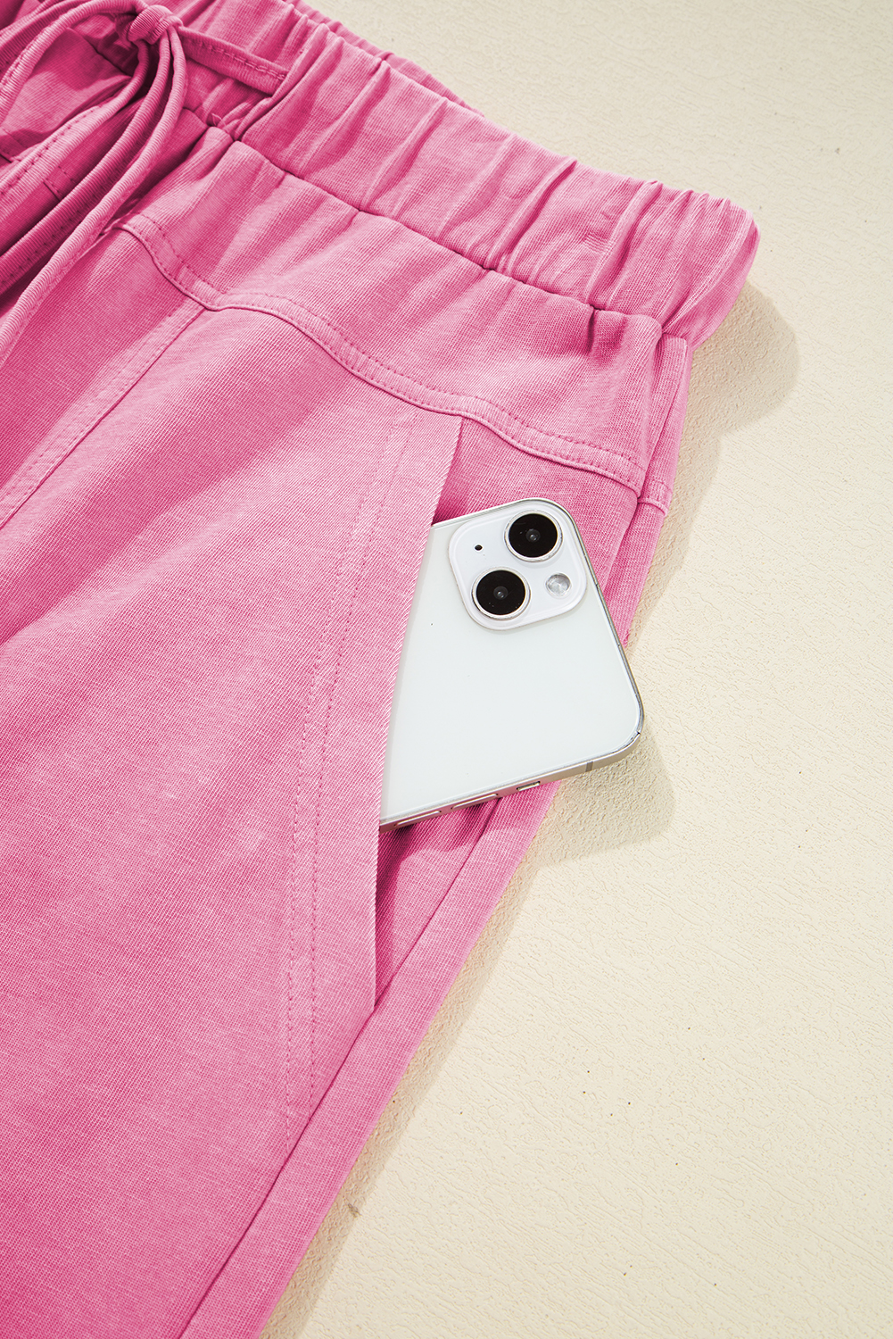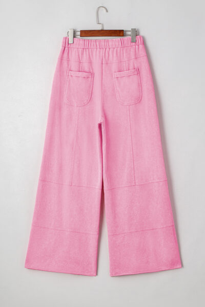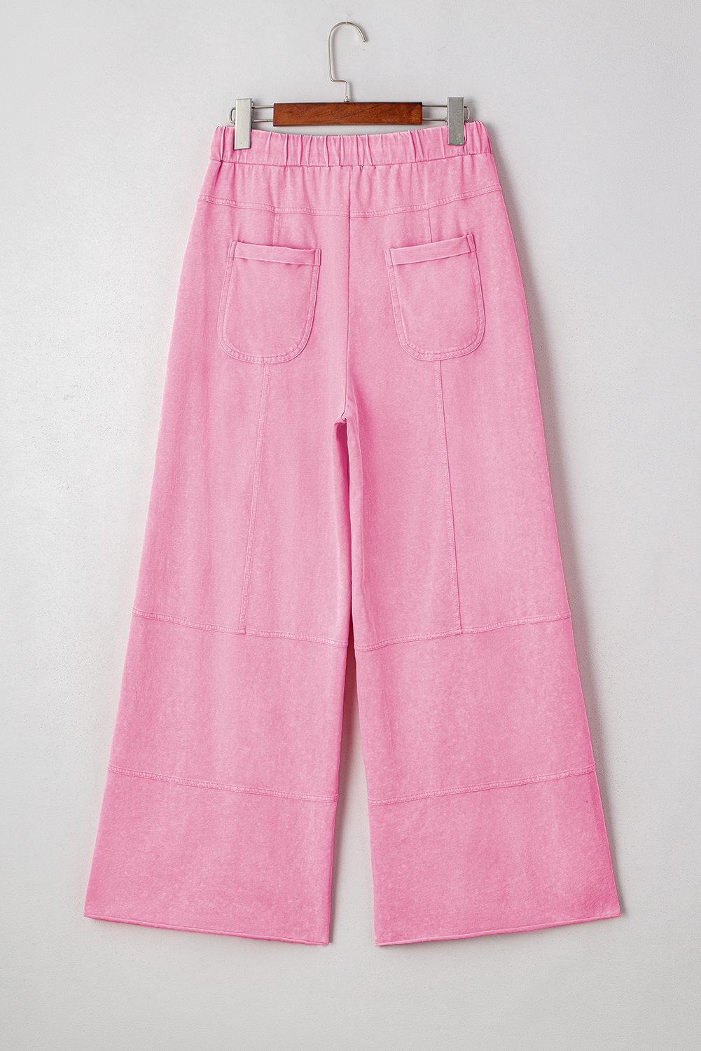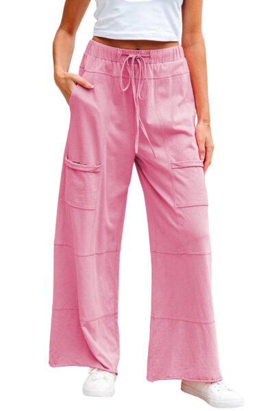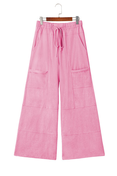 Bonbon Mineral Wash Exposed Seam Drawstring Elastic Waistband Wide Leg Cargo Pants
