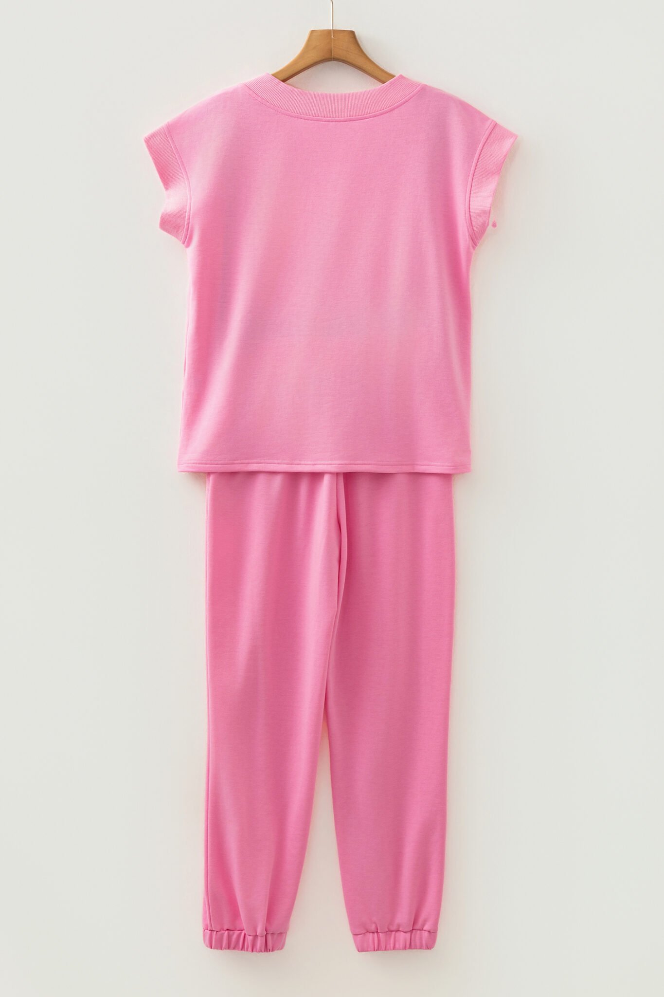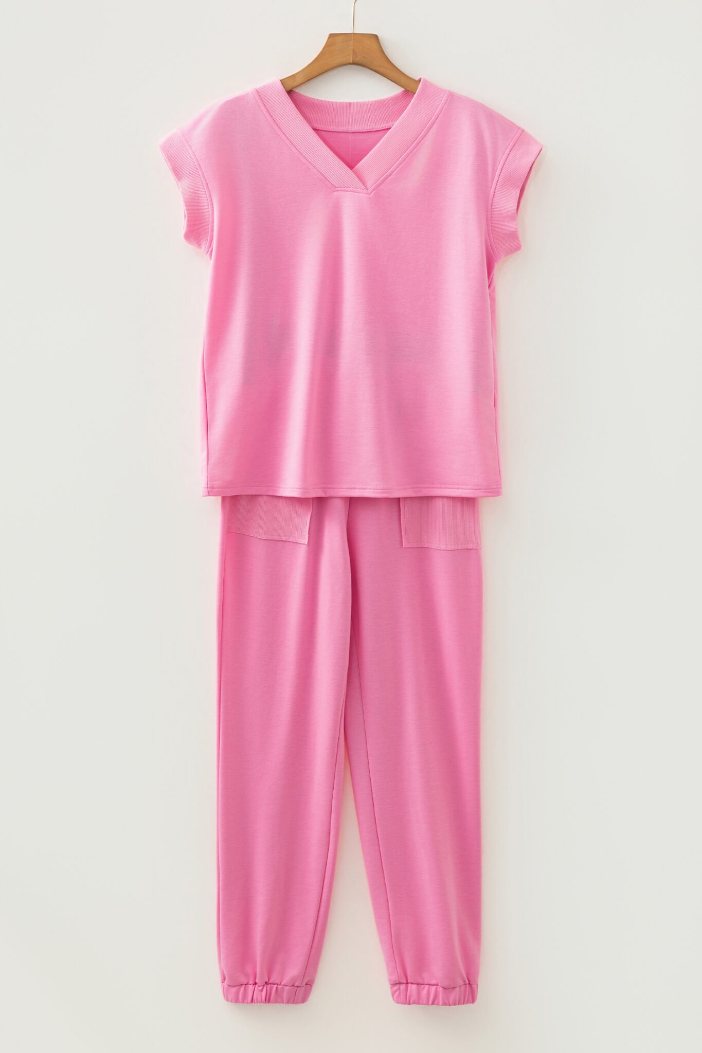 Bonbon Solid Color V Neck Tee Drawstring Pant Set