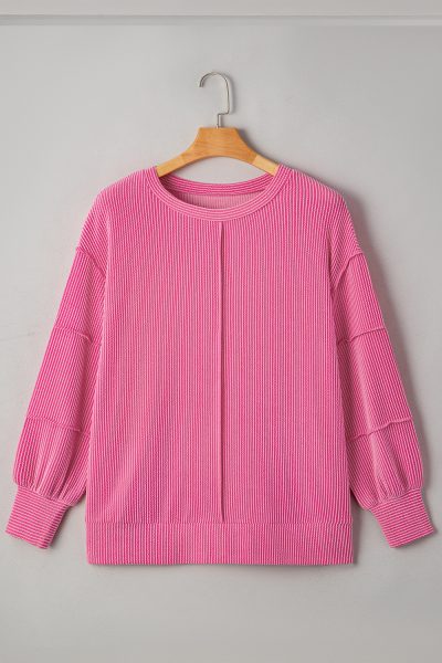 Bonbon Spiral Ribbed Exposed Seam Detail Plus Size Long Sleeve Top
