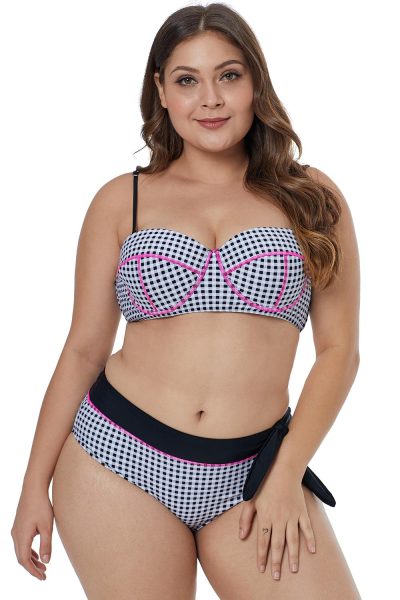 Brenda Women Contrast Piping Tartan Printed Pattern Plus Size Bikini