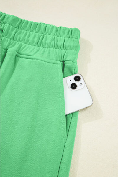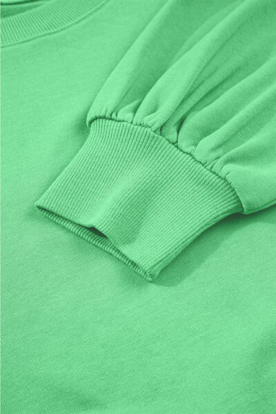 Bright Green Drop Shoulder Puff Sleeve Crop Pullover Drawstring Wide Leg Pants Set