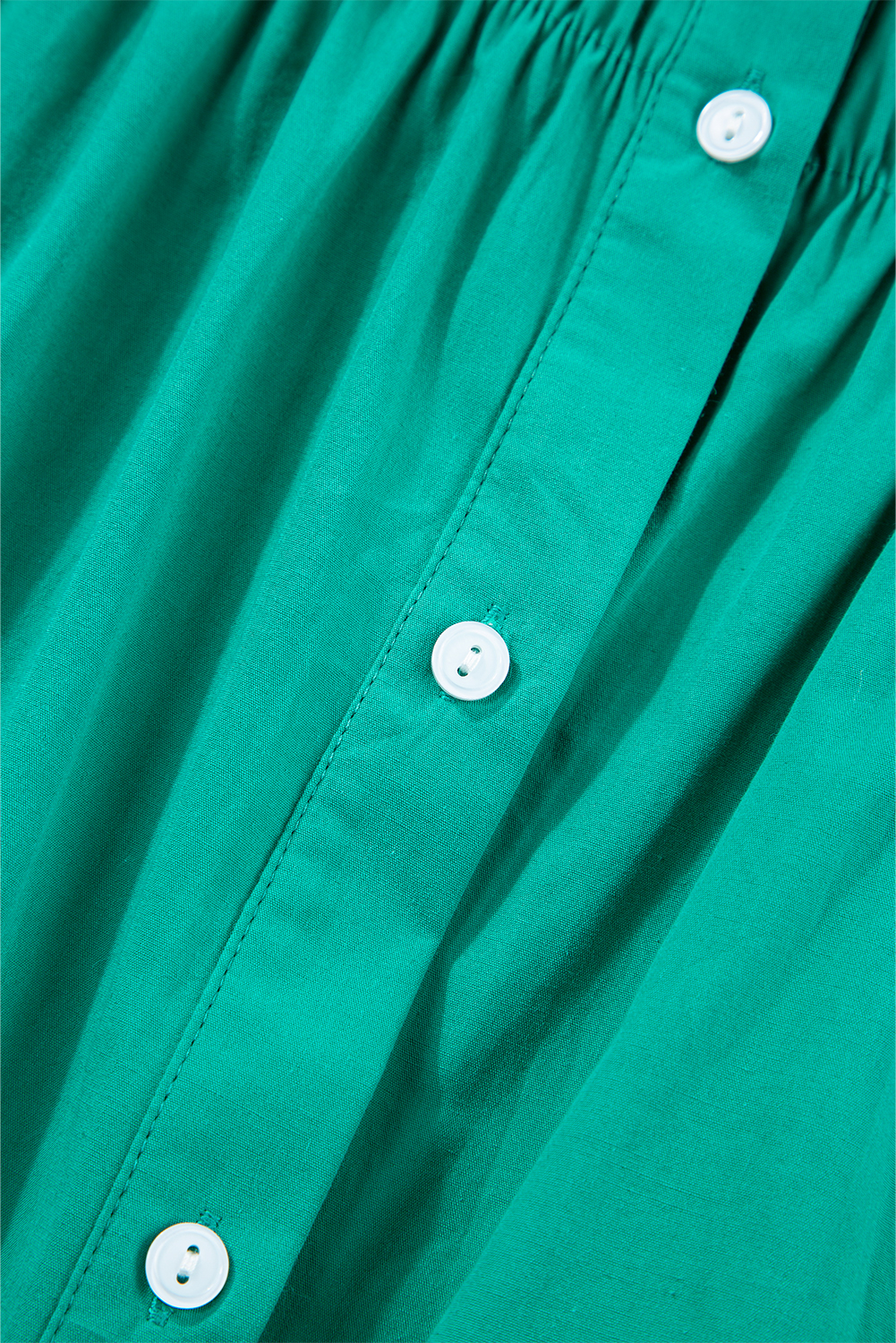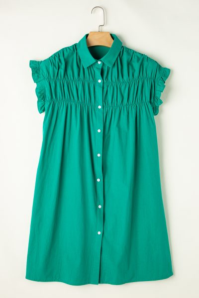 Bright Green Shirred Ruffle Sleeve Button Up Short Dress