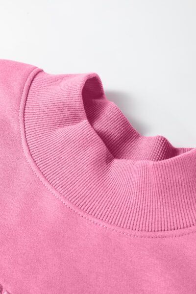 Bright Pink Oversize Blessed Embroidered Mock Neck Sweatshirt
