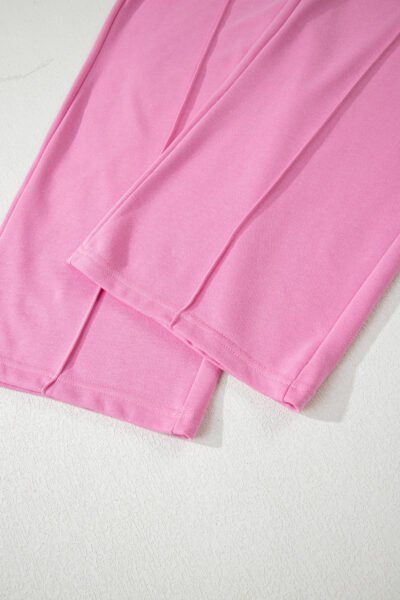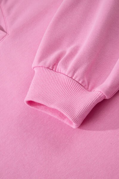 Bright Pink Polo Collar V Neck Pullover and Drawstring Sweatpants Set