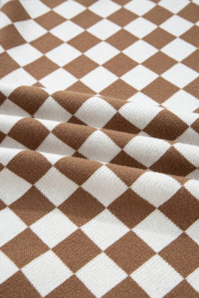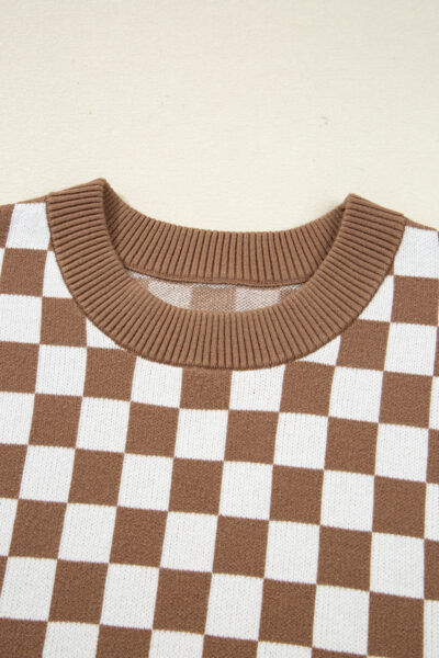 Brown Checkered Contrast Edge Crewneck Plus Size Sweater
