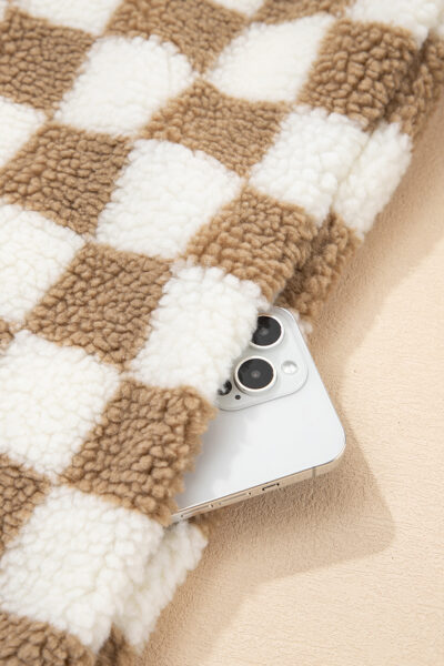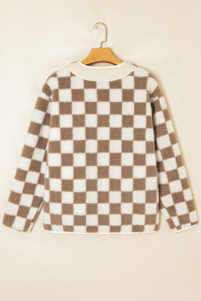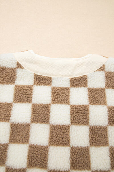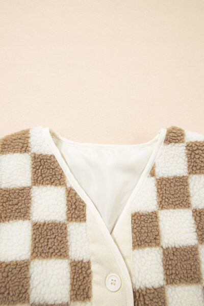 Brown Checkered Sherpa Buttoned Front Chunky Jacket