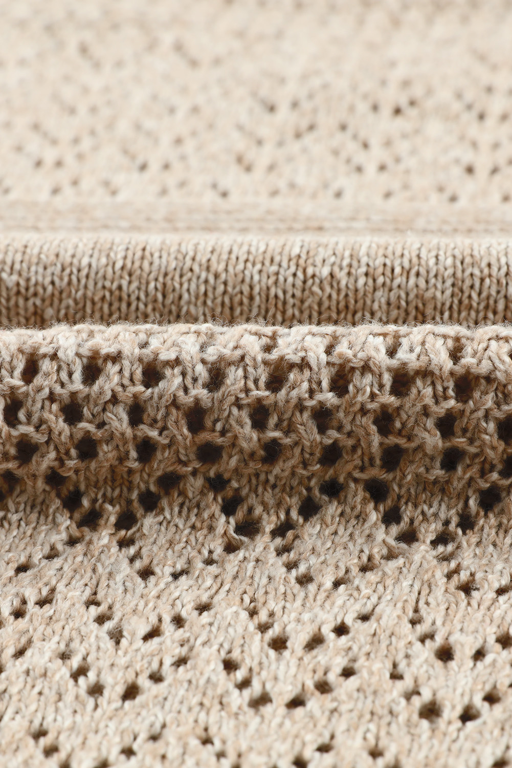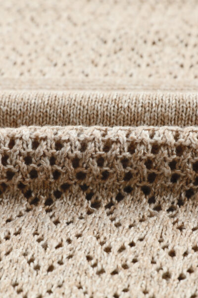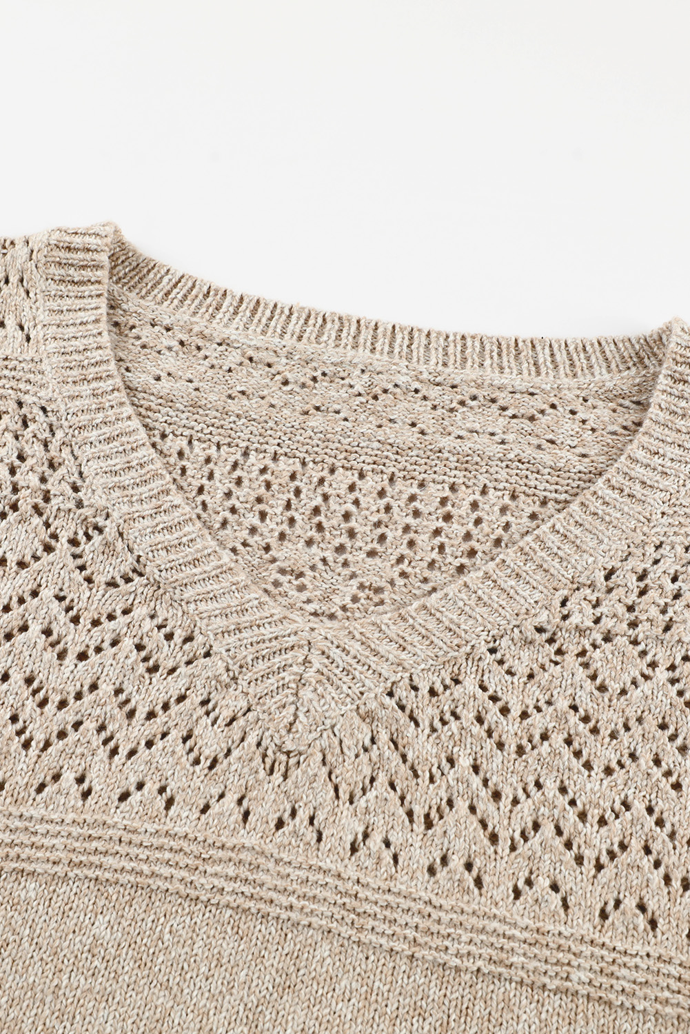 Brown Eyelet Pattern Detail V Neck Drop Shoulder Sweater