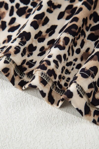 Brown Leopard Print Contrast Trim Round Neck Long Sleeve Top