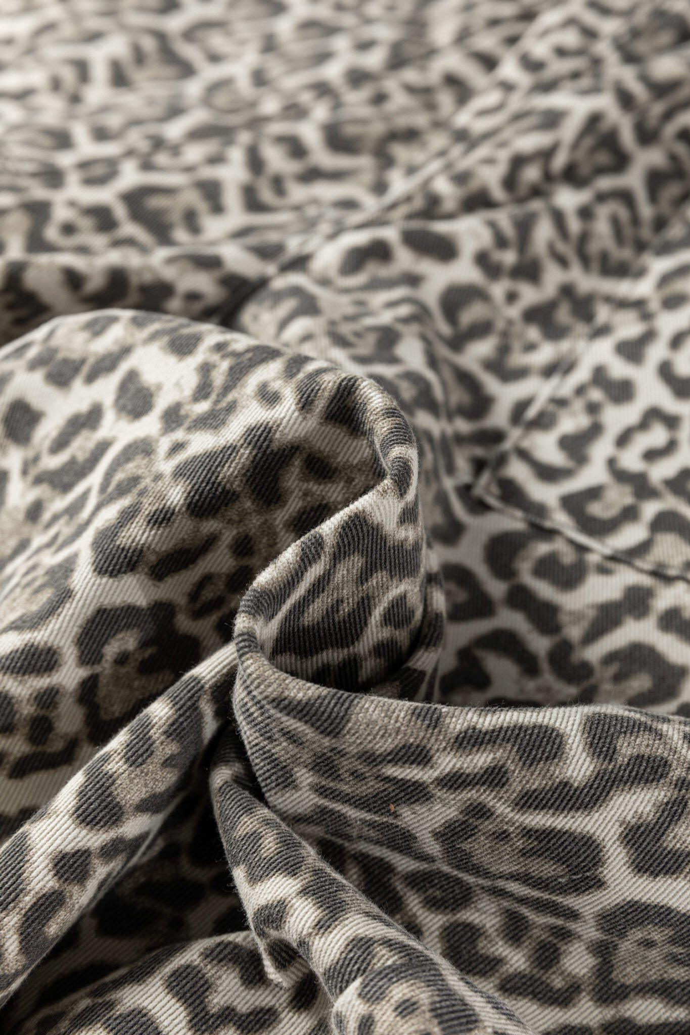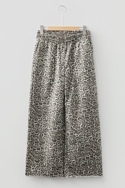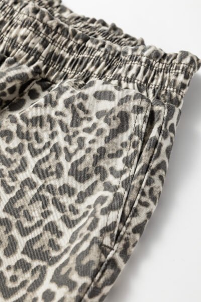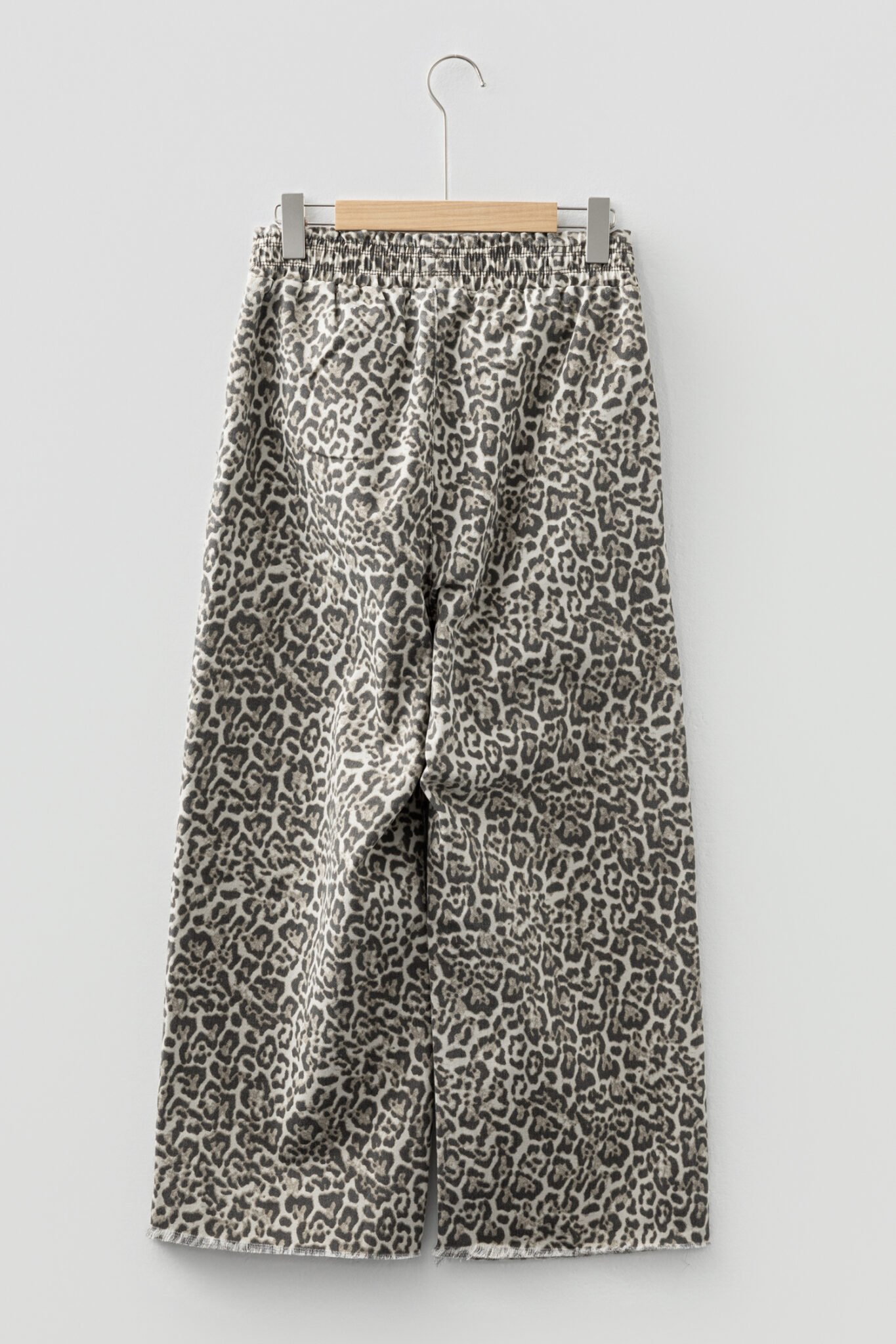 Brown Leopard Print Raw Hem Elastic Waist Loose Pull On Jeans