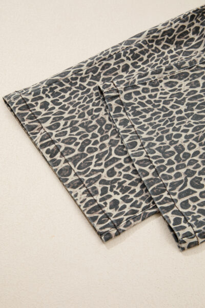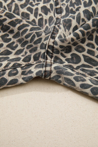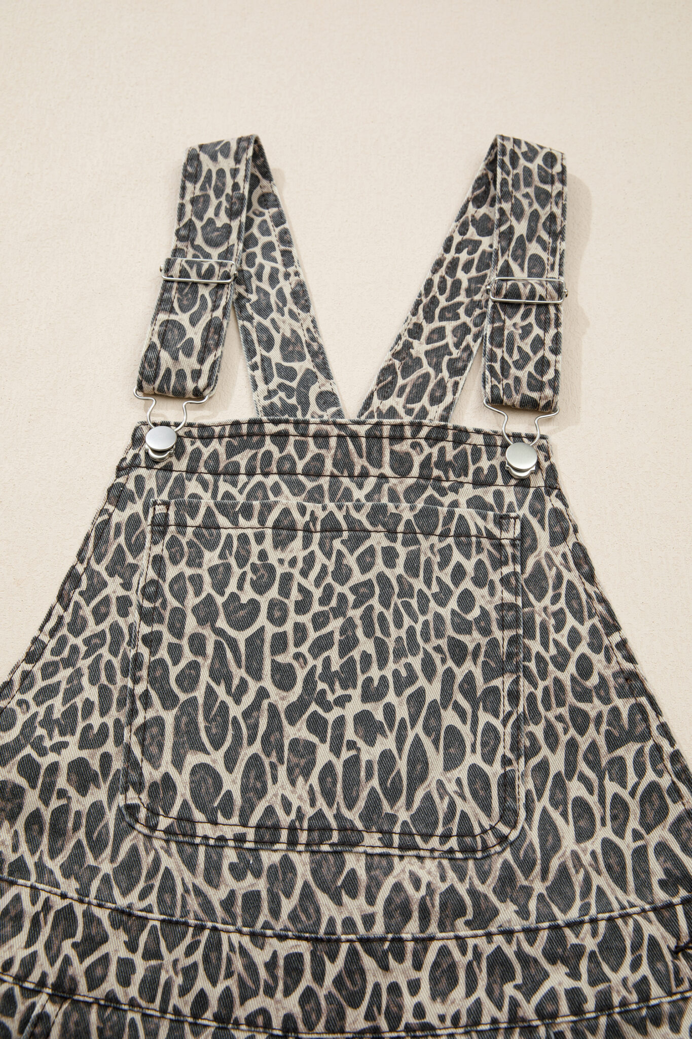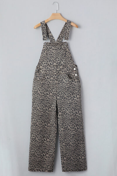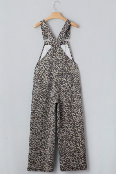 Brown Leopard Print Straight Leg Loose Denim Overall Jumpsuit