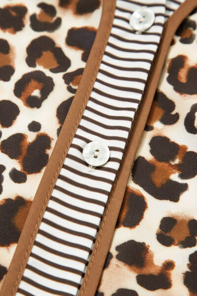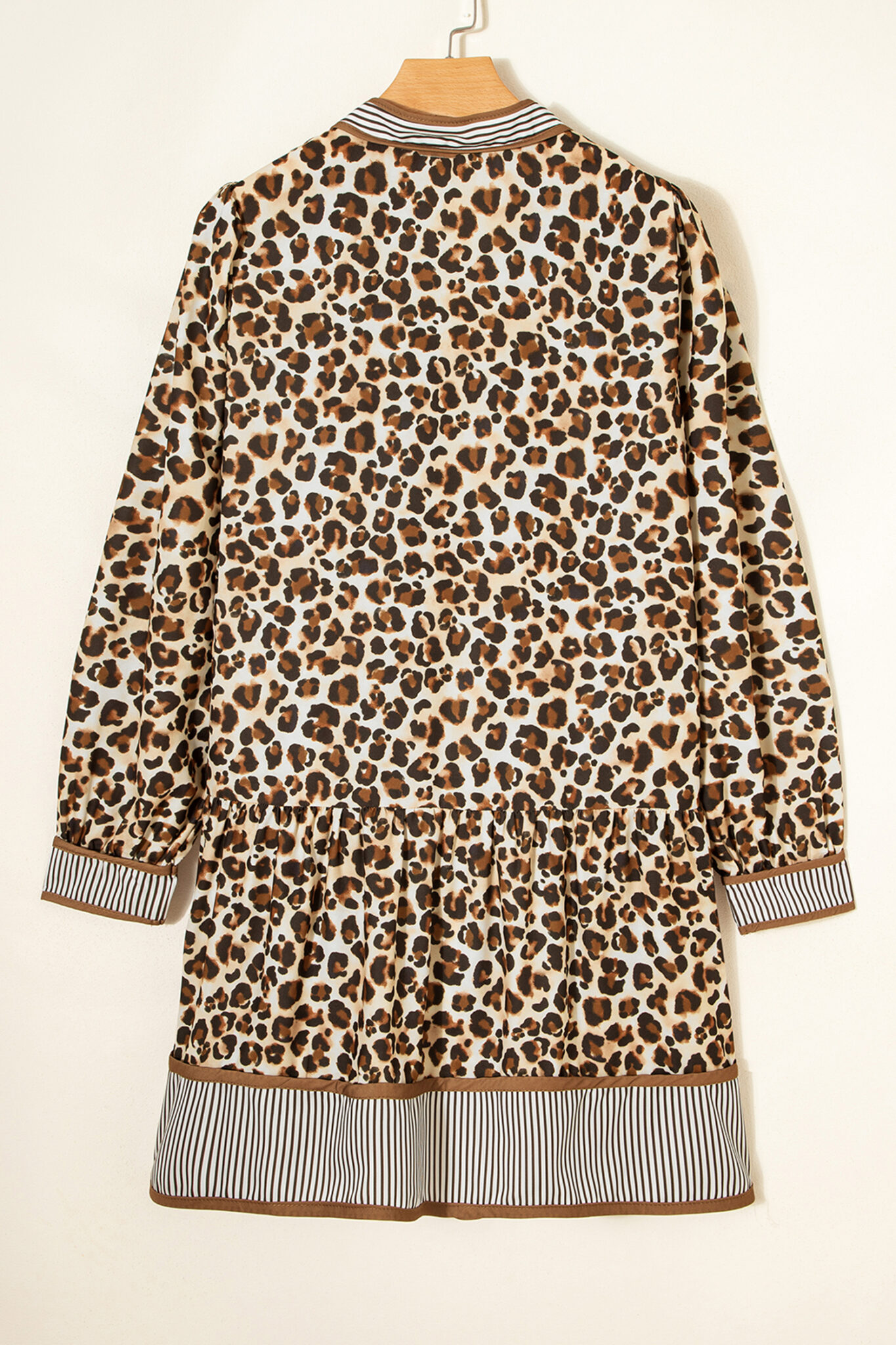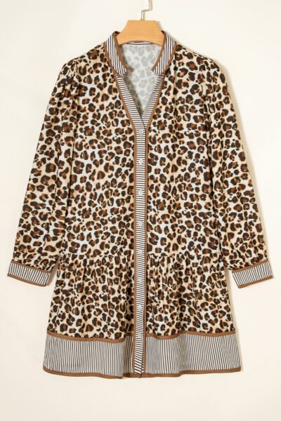 Brown Leopard Print Striped Patchwork 3/4 Sleeve Loose Mini Dress