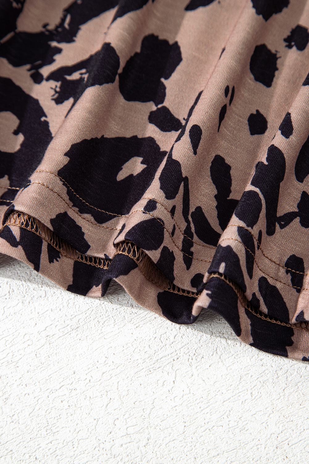Brown Leopard Print V Neck Half Sleeve Oversized Tee