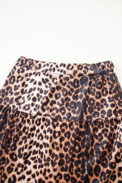 Brown Leopard Tiered Patchwork Hot Mini Skirt