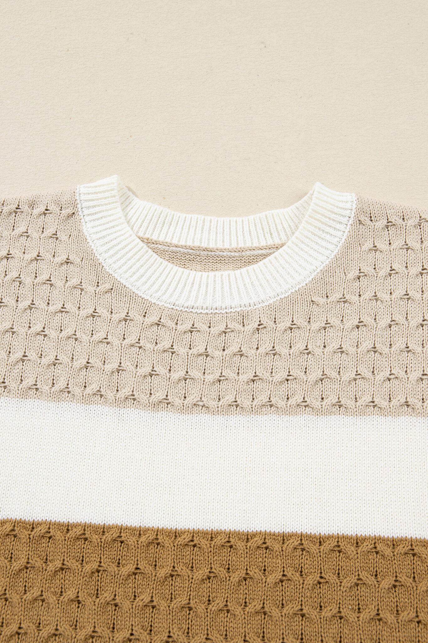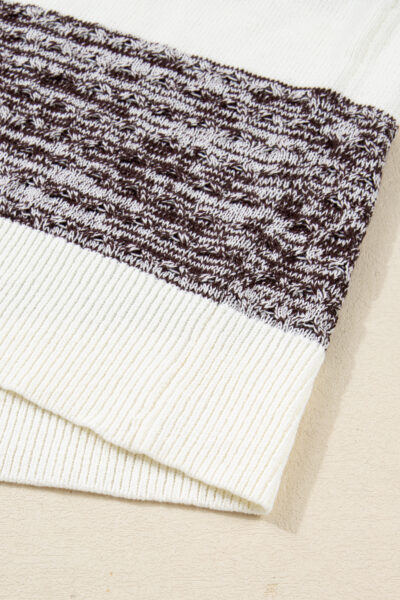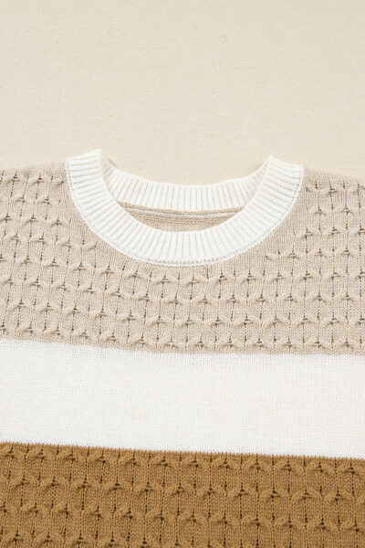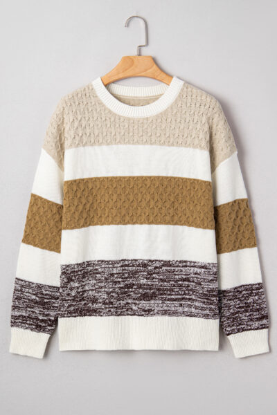 Brown Mixed Texture Knit Striped Color Block Loose Sweater