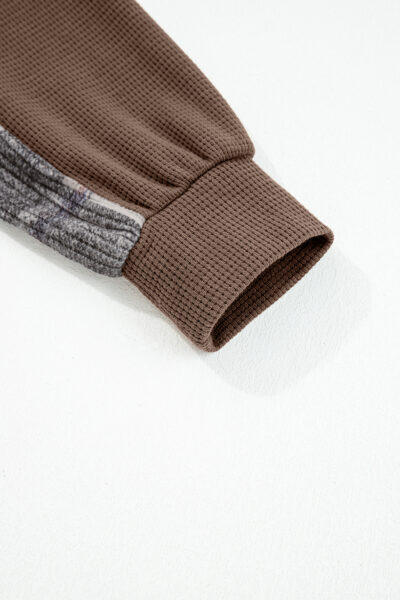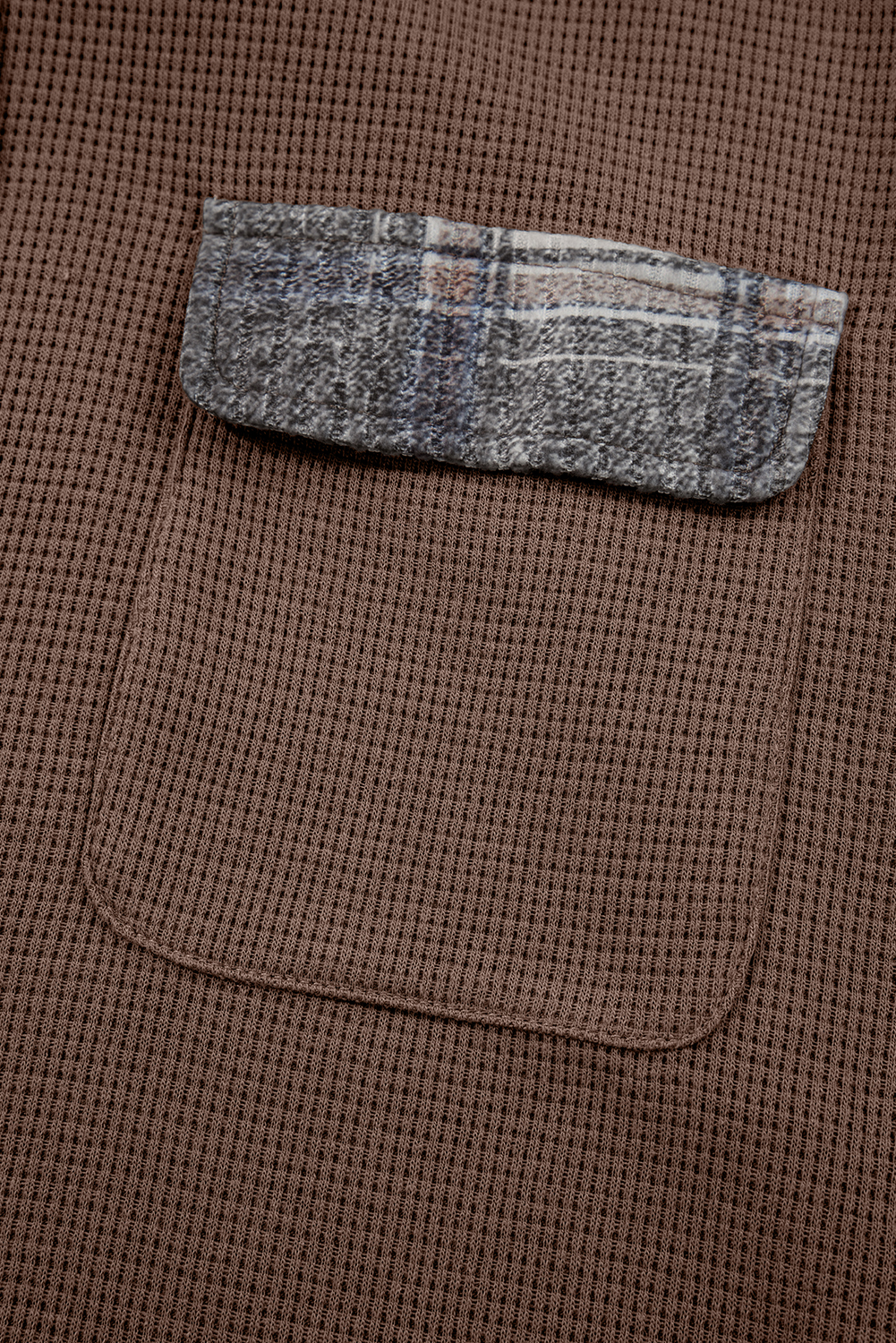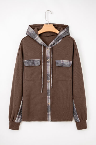 Brown Plaid Patchwork Button Down Drawstring Hooded Shacket