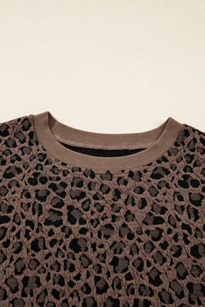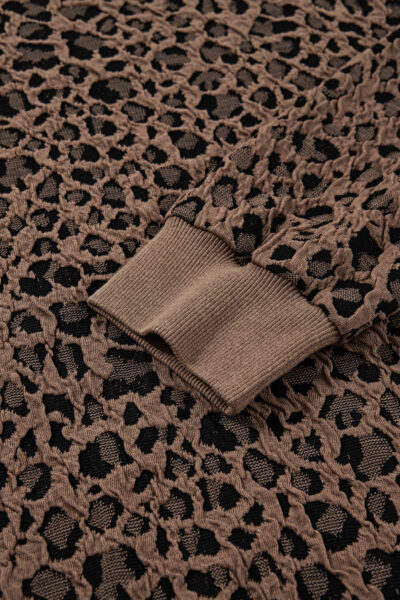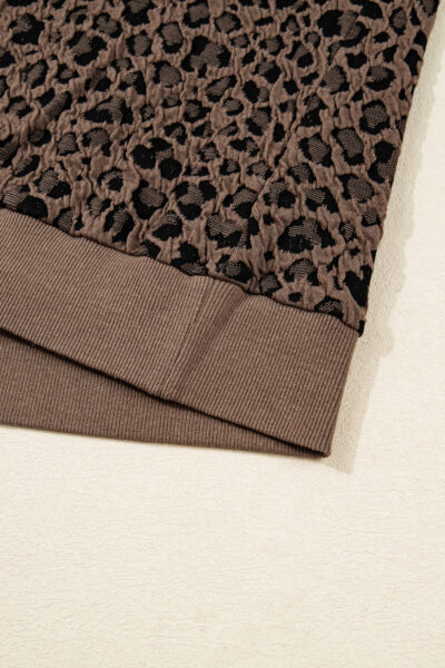 Brown Ribbed Trim Leopard Print Long Sleeve Top