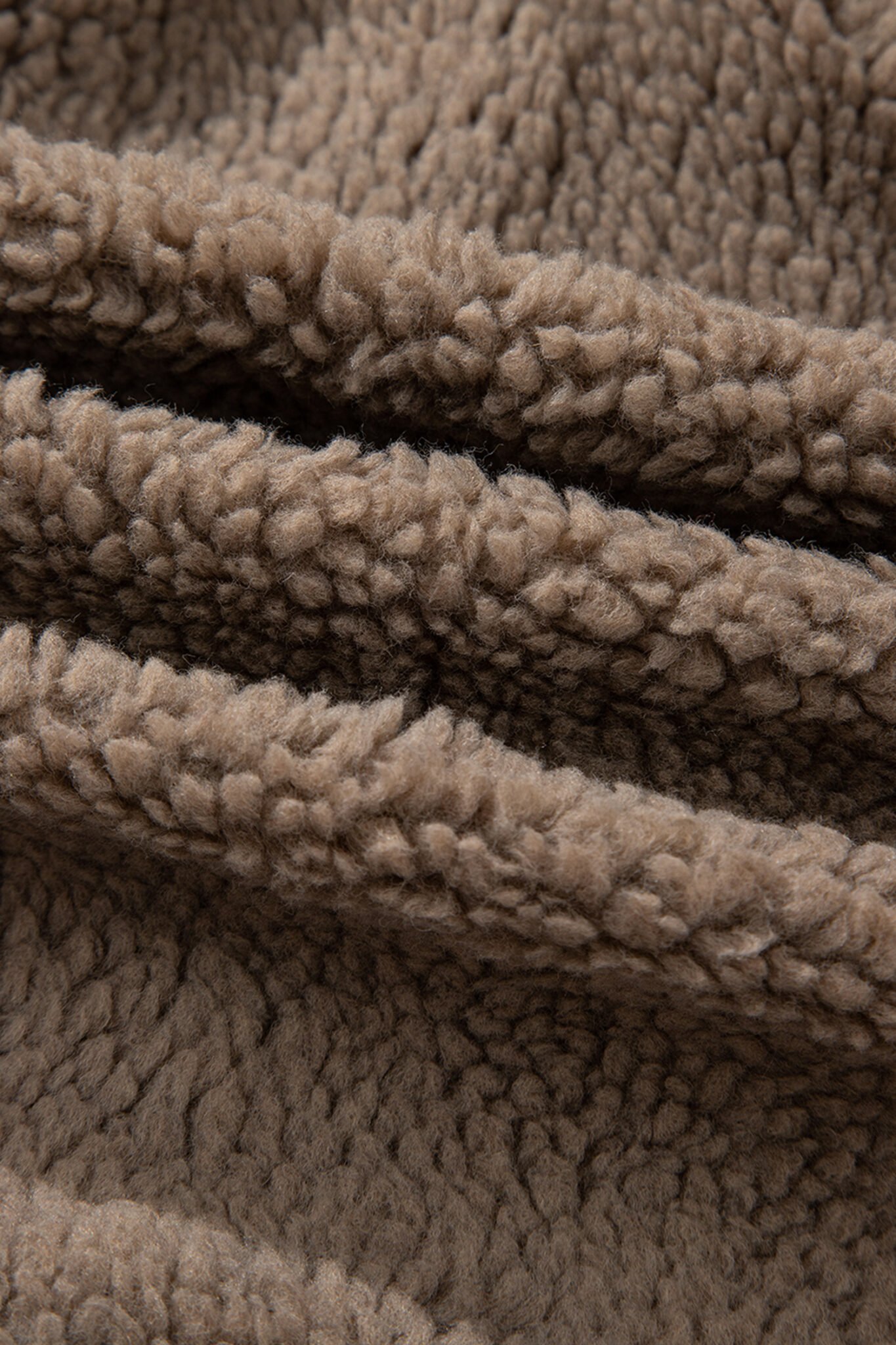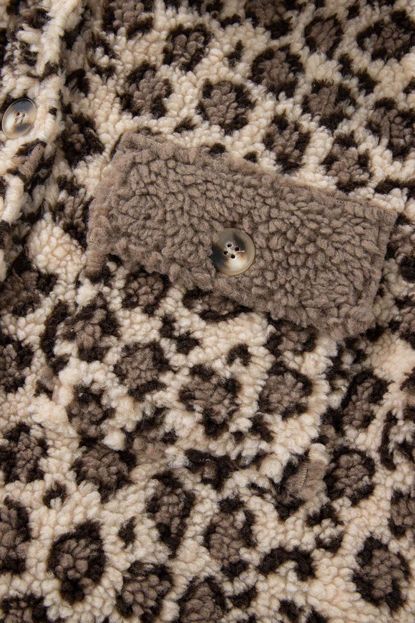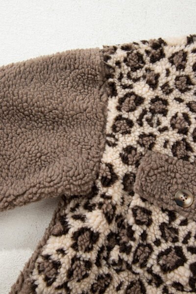 Brown Sherpa Leopard Print Flap Pocket Collared Button Up Jacket