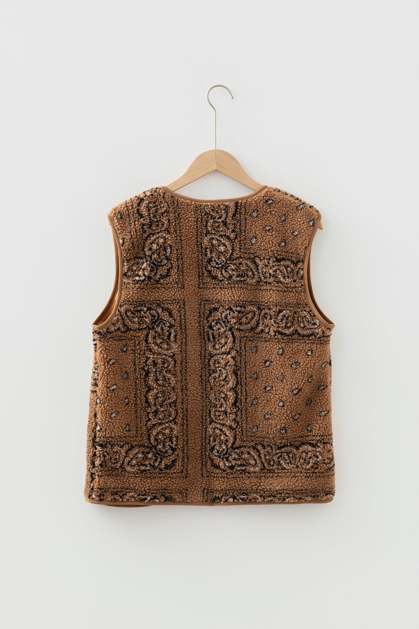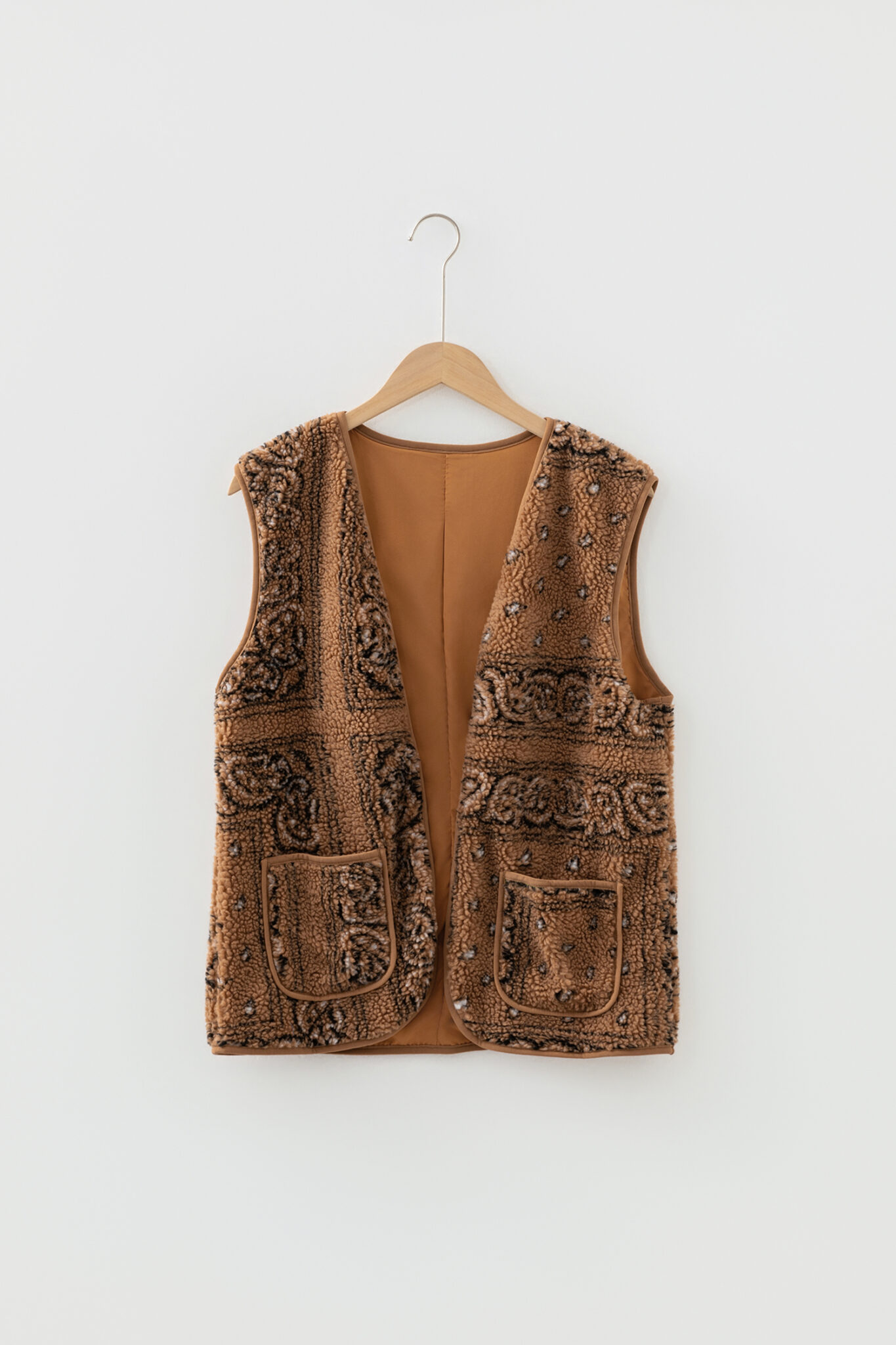 Brown Sherpa Paisley Print Pocketed Western Fashion Vest Jacket