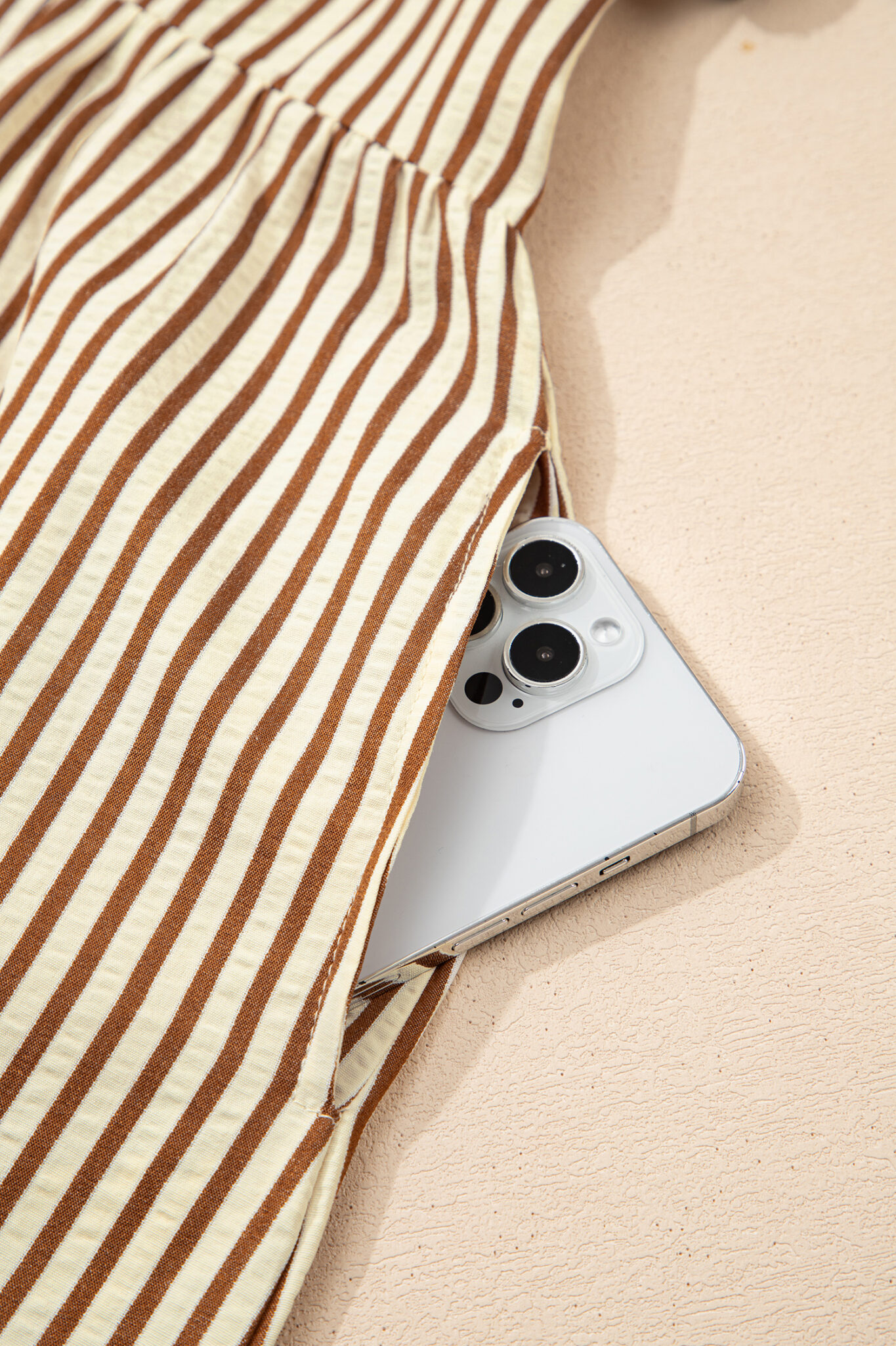 Brown Stripe Double Ruffled Short Sleeve Contrast Trim V Neck Midi Dress