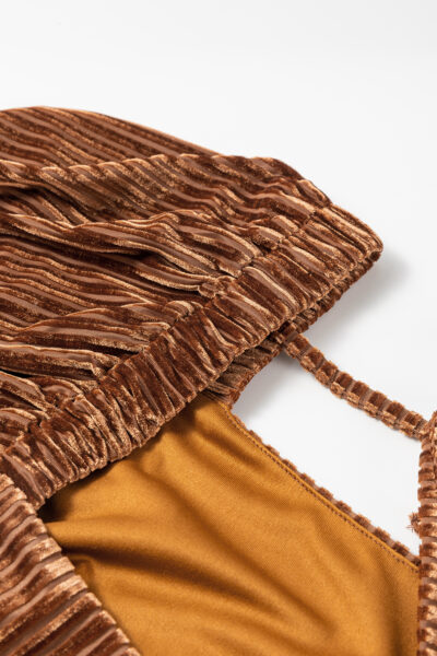 Brown Tie Back Square Neck Velvet Babydoll Dress