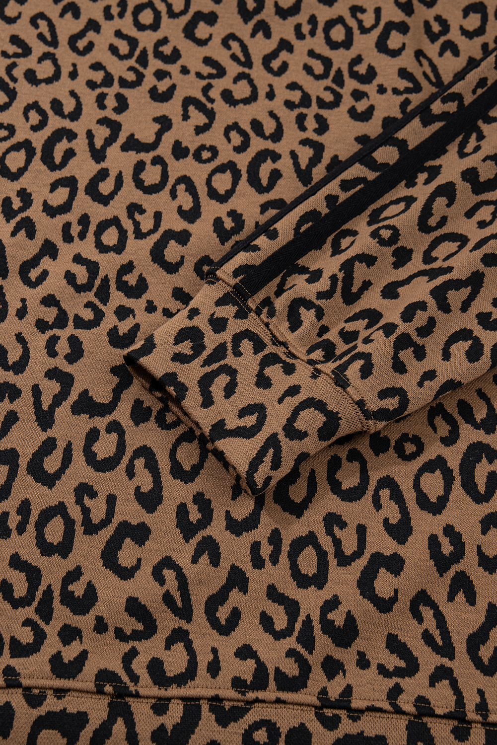 Brown Varsity Striped Trim Leopard Long Sleeve Top Drawstring Pant Set