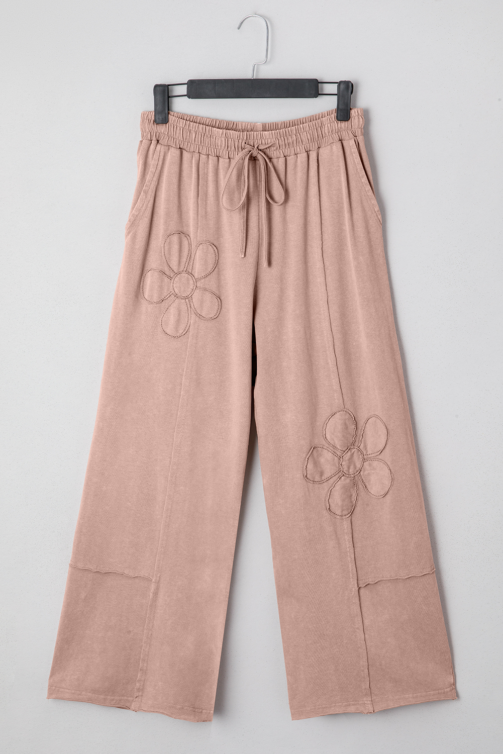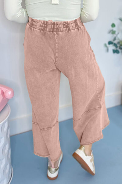 Buckskin Flower Patch Mineral Washed Terry Knit Cropped Wide Leg Pants