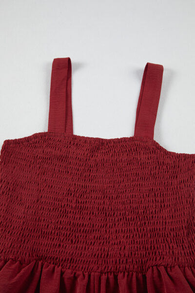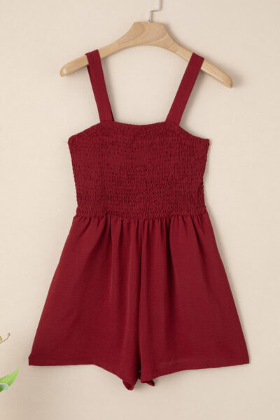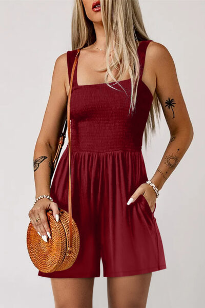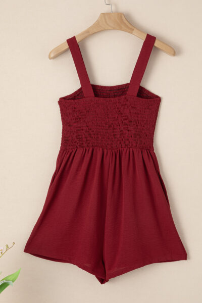 Burgundy Casual Pocketed Smocked Sleeveless Romper