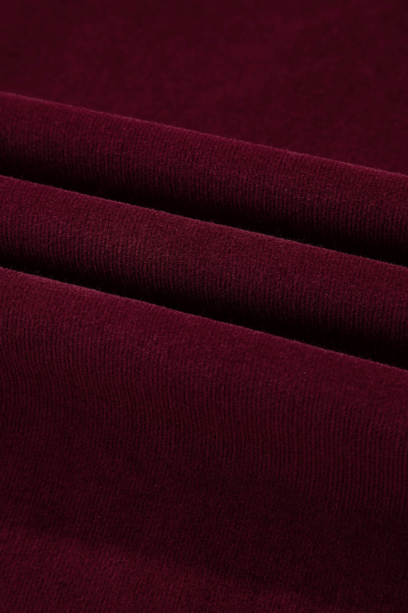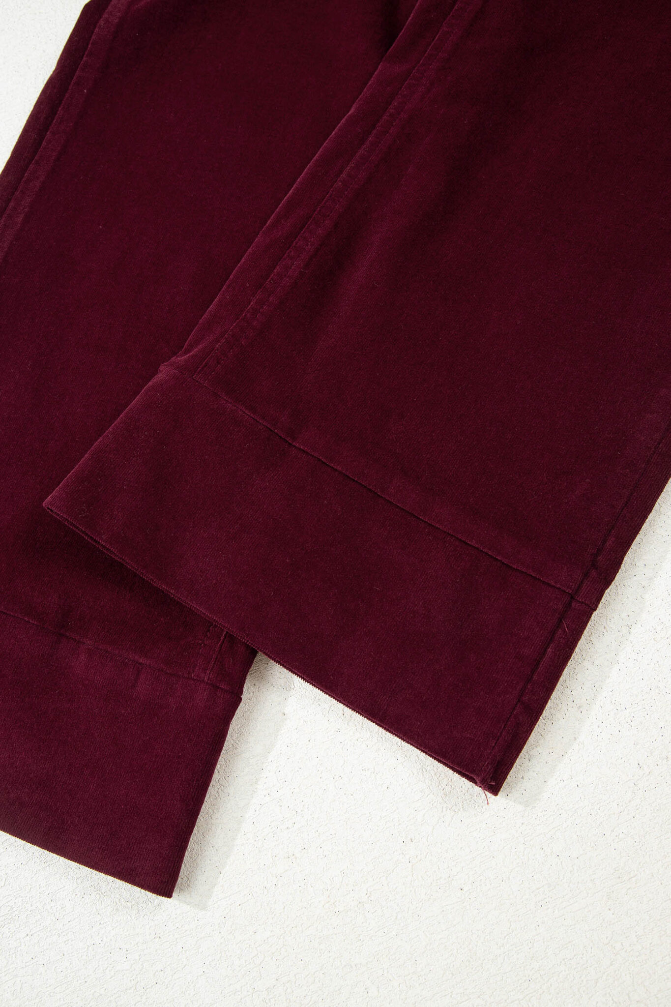 Burgundy Corduroy Solid Color High Waist Wide Leg Pants