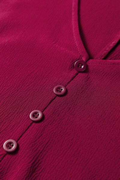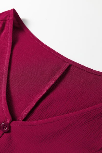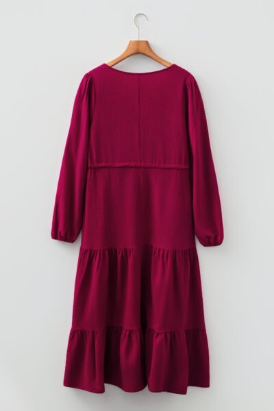 Burgundy Solid Long Sleeve Button V Neck Tiered Maxi Dress