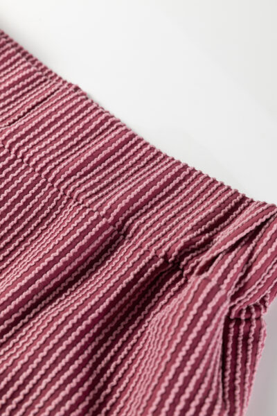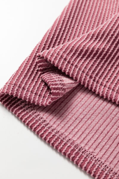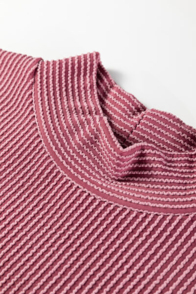 Burgundy Twisted Ribbed High Neck Loose Tee Elastic High Waist Loose Pant Set