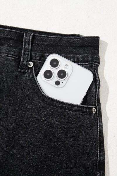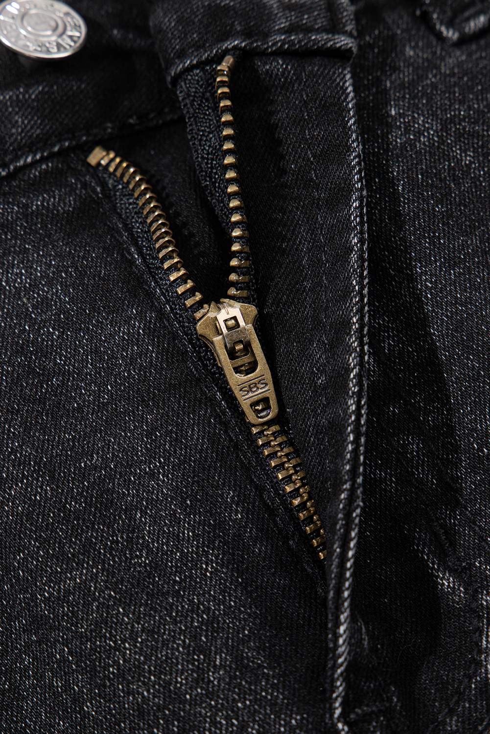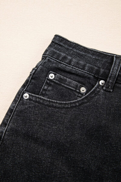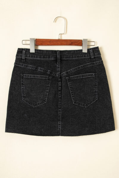 Carbon Grey Mineral Wash Ripped Raw Hem Denim Mini Skirt