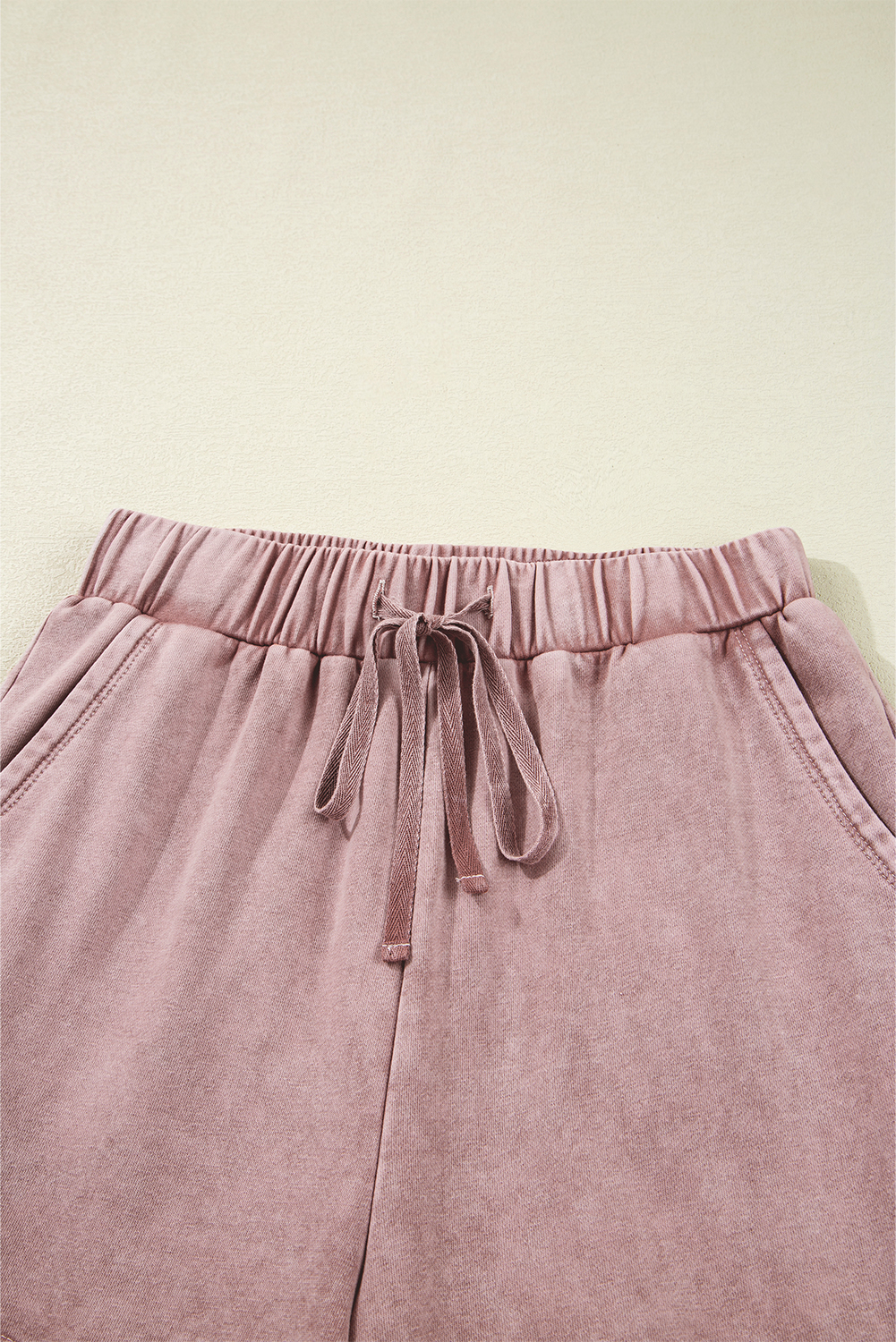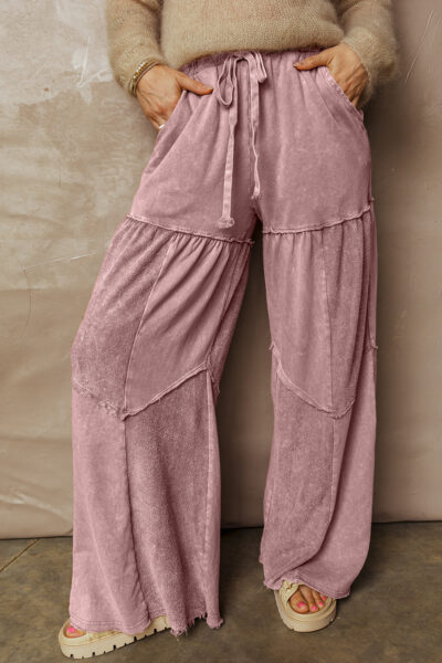 Careys Mineral Wash Tiered Wide Leg Patchwork Drawstring Pants