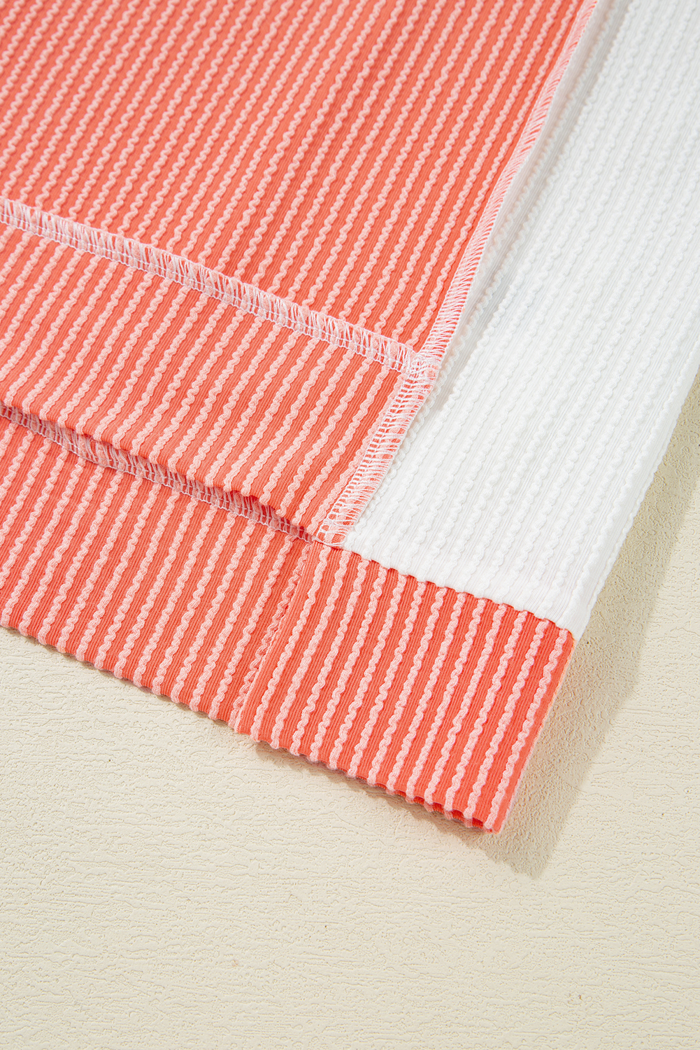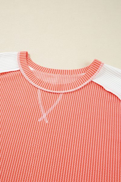 Carrot Twist Rib Colorblock Hi Low Plus Size Short Sleeve Top