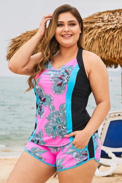 Catherine Women Rose Floral Block Plus Size Swimwear